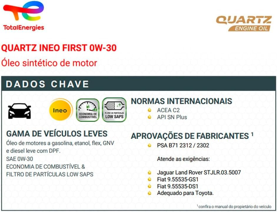 Oleo Sintetico 0w30 Quartz Ineo First