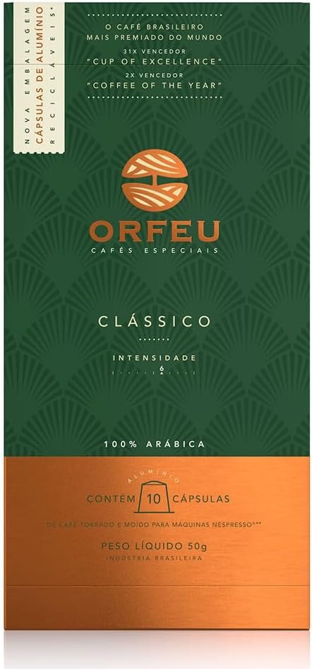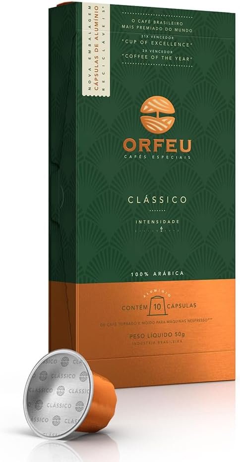 Orfeu Café Clássico 10 Cápsulas Compatível com Nespresso®, 100% Arabica, Torra Média, 50gOrfeu Café Clássico 10 Cápsulas Compatível com Nespresso®, 100% Arabica, Torra Média, 50g