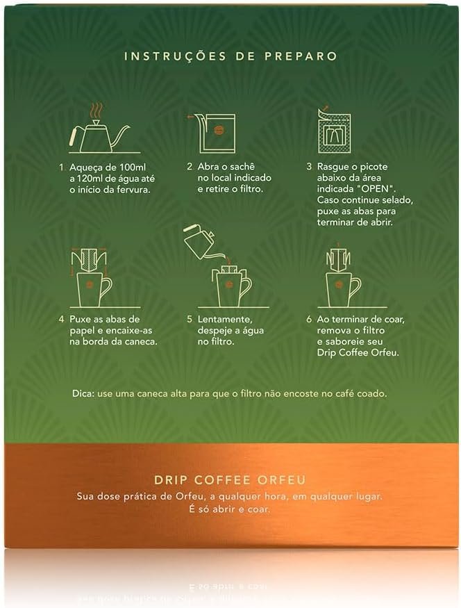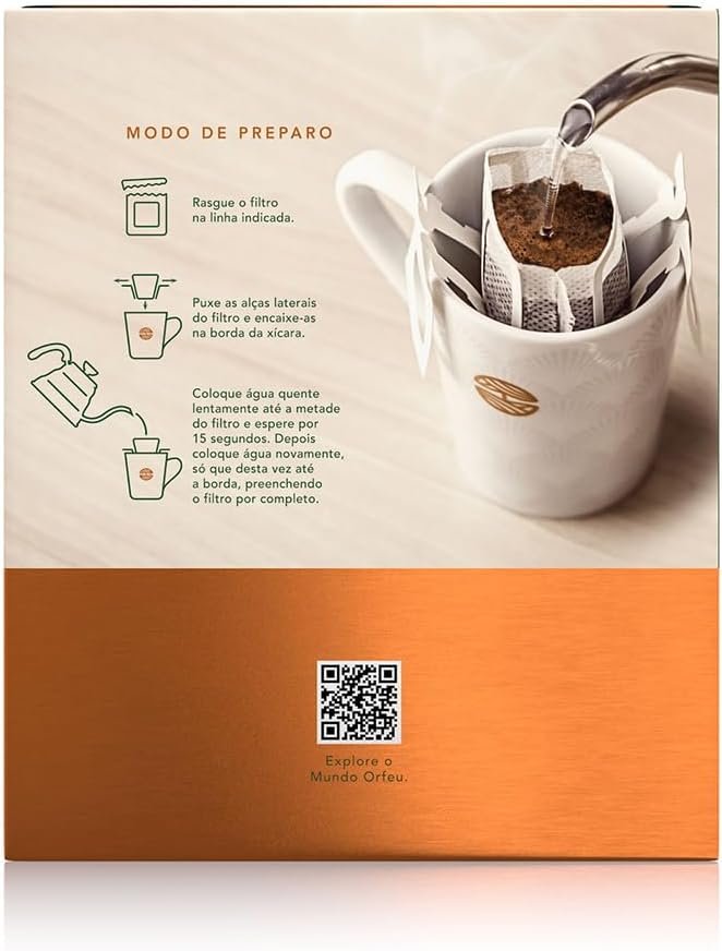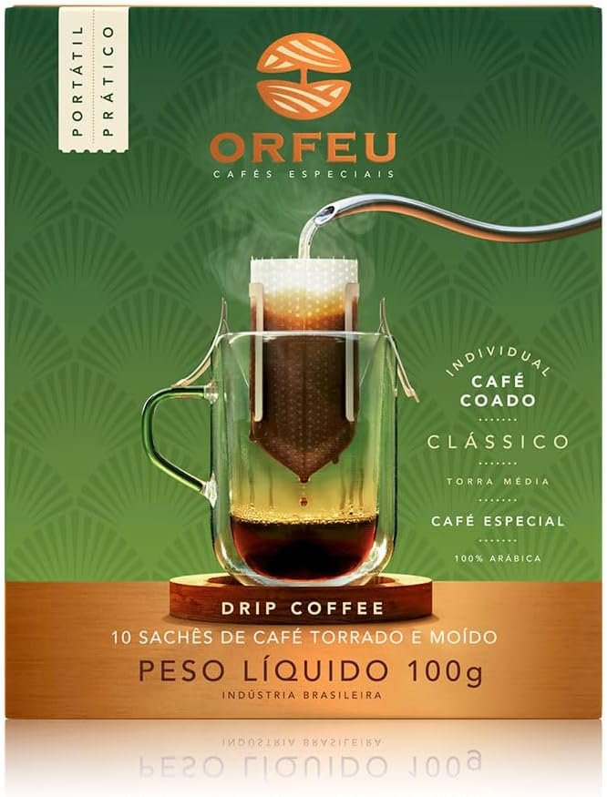 Orfeu Café Clássico 10 sachet Drip Coffee, 100% Arabica, Torra Média, 100g
