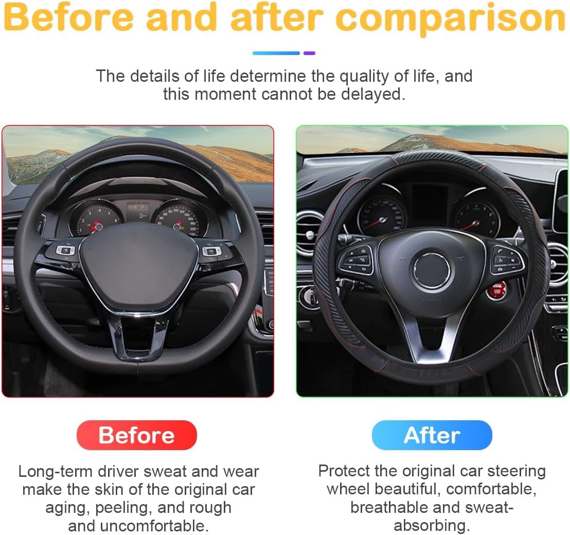 Osilly Capa de volante de carro, 38 cm, fibra de carbono, microfibra, couro PU, elástico, protetor de volante para homens e mulheres, acessórios de interior de carro respiráveis antiderrapantes para a maioria dos carros (preto)Osilly Capa de volante de carro, 38 cm, fibra de carbono, microfibra, couro PU, elástico, protetor de volante para homens e mulheres, acessórios de interior de carro respiráveis antiderrapantes para a maioria dos carros (preto)
