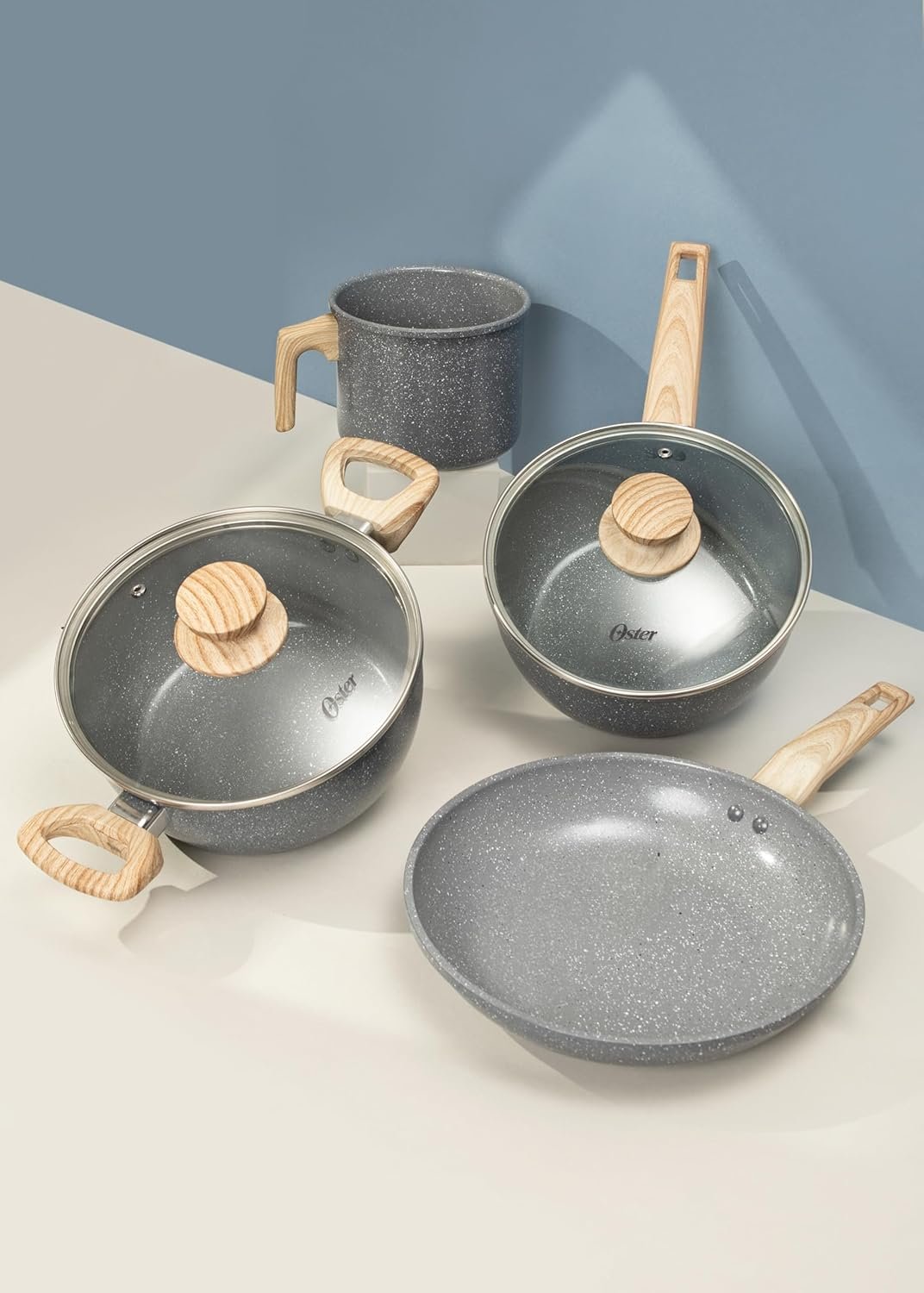 OSTER JOGO DE PANELAS E LEITEIRA MARBLE EDITION DARK GREY – 4 PEÇAS COM REVESTIMENTO CERÂMICO ANTIADERENTE, ALÇAS EM SILICONE ANTITÉRMICO E BASE COMPATÍVEL COM INDUÇÃO