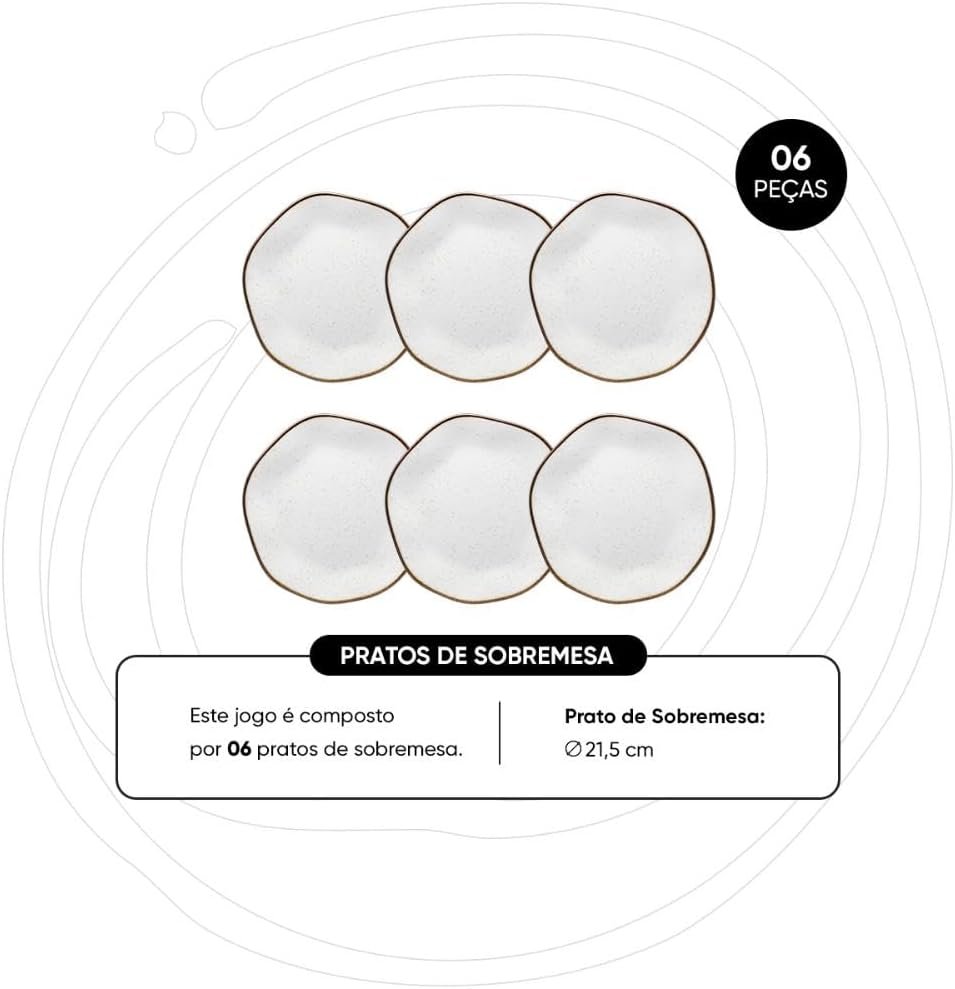 Oxford Conjunto com 6 Pratos de Sobremesa 21,5cm Ryo Maresia