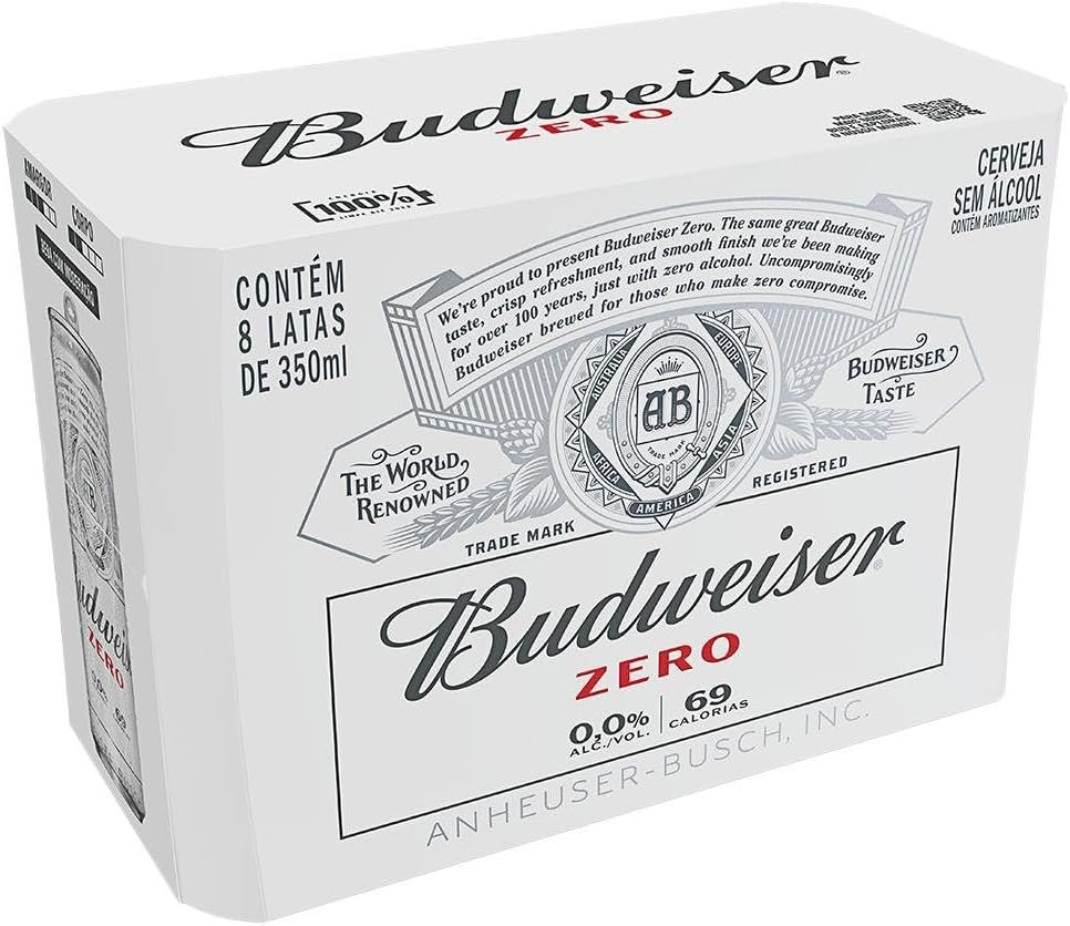 Pack Cerveja Budweiser Zero Álcool, 350ml, Lata – 8 unidades