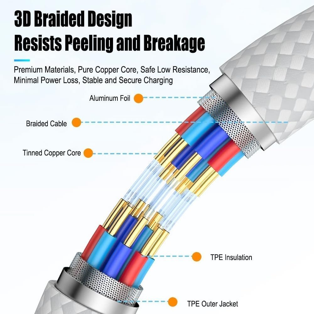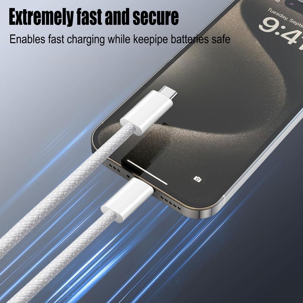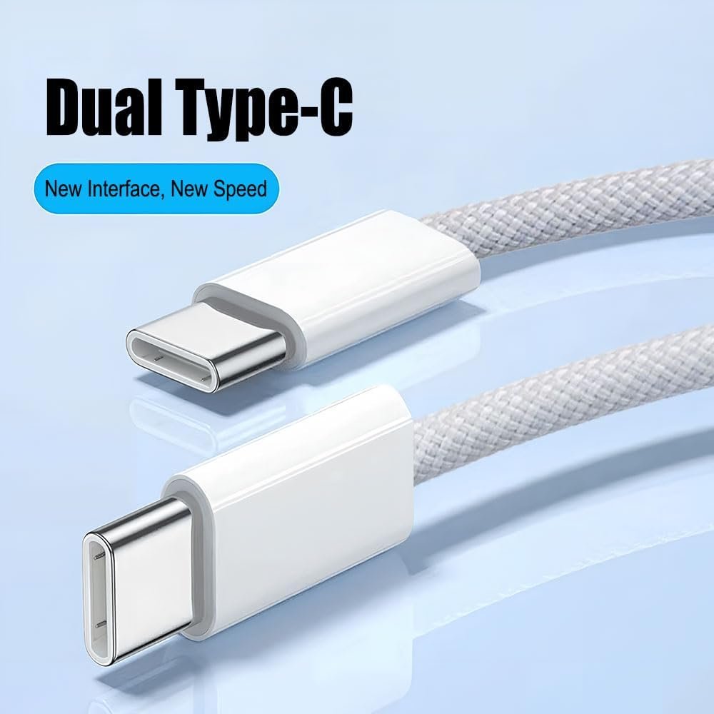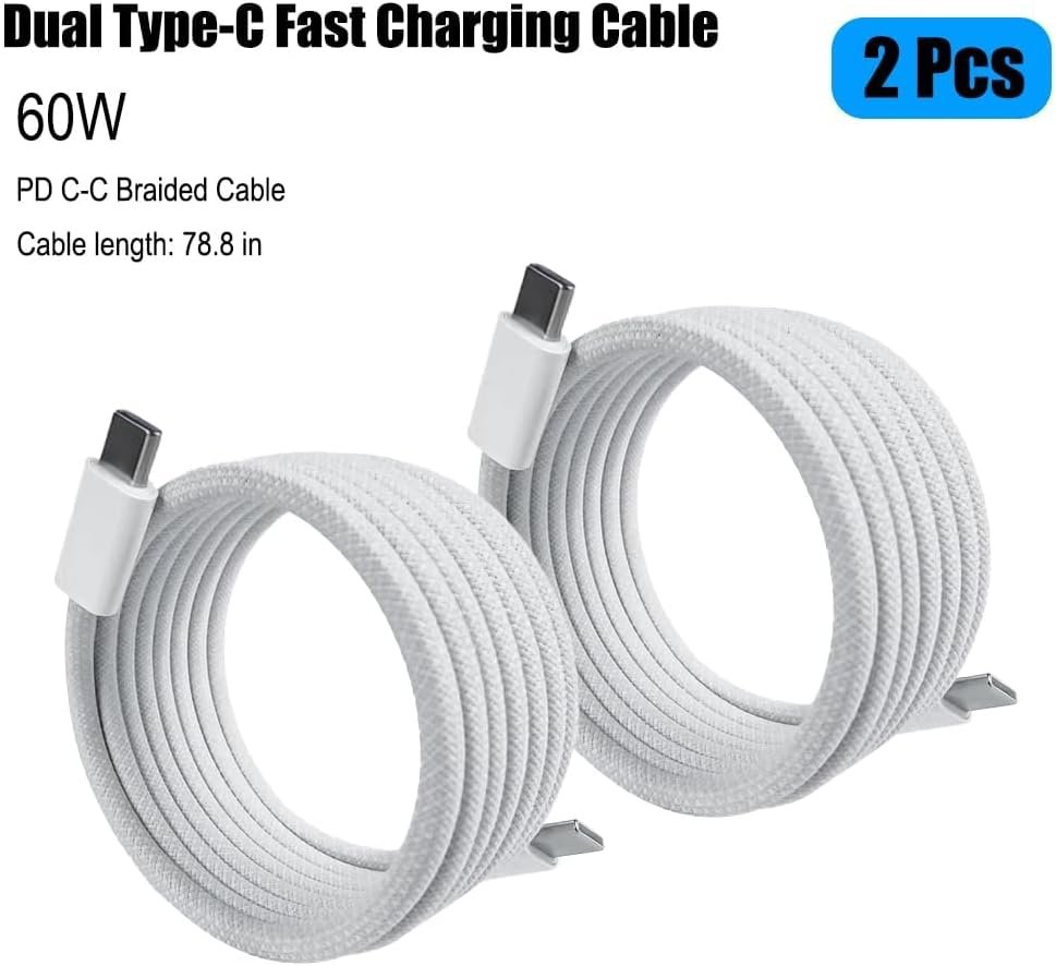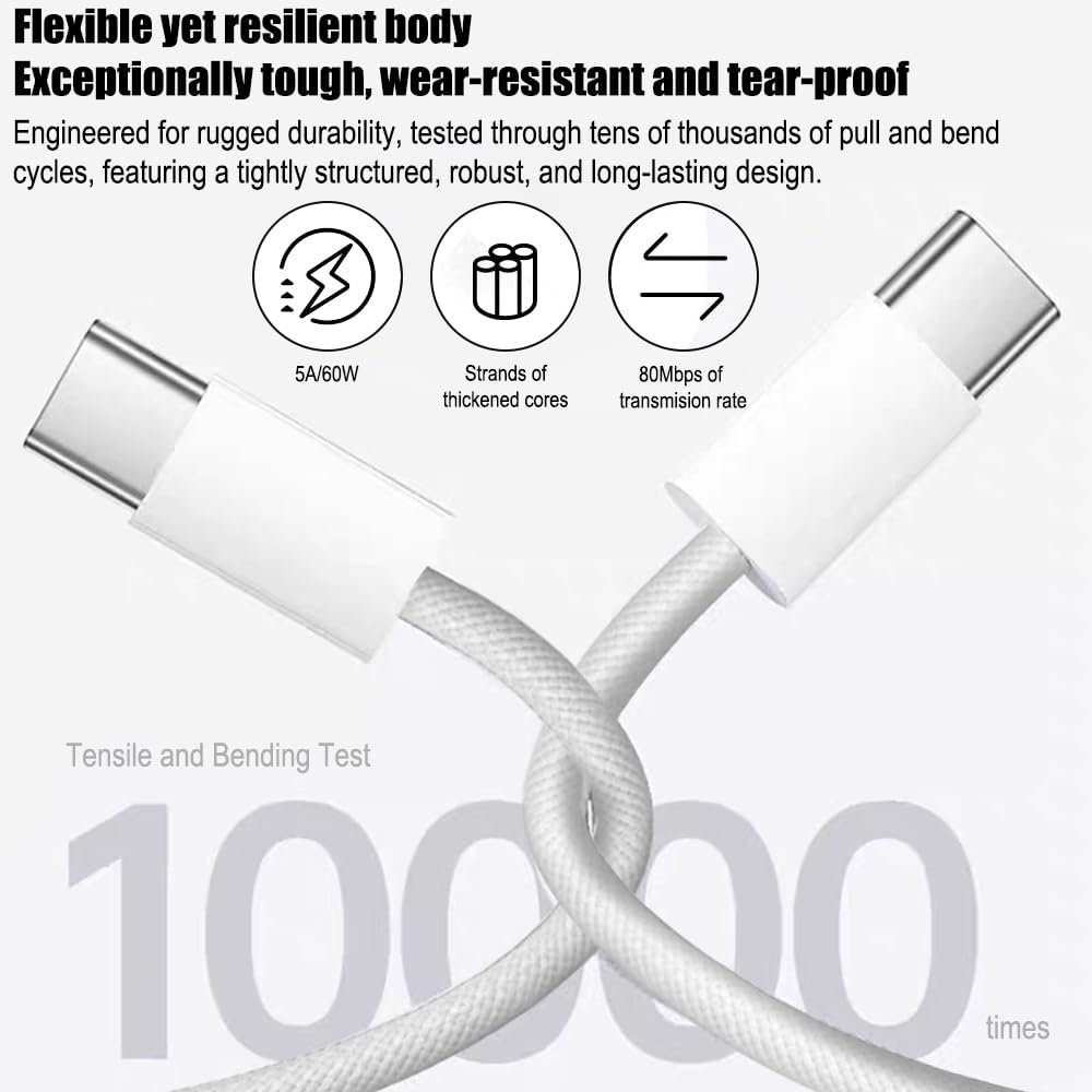 Pacote com 2 cabos trançados de carregamento de 60 W 1,5 m (2 cabos USB C para USB C) Tipo C 60W Cabo de carregamento rápido para telefone – Branco
