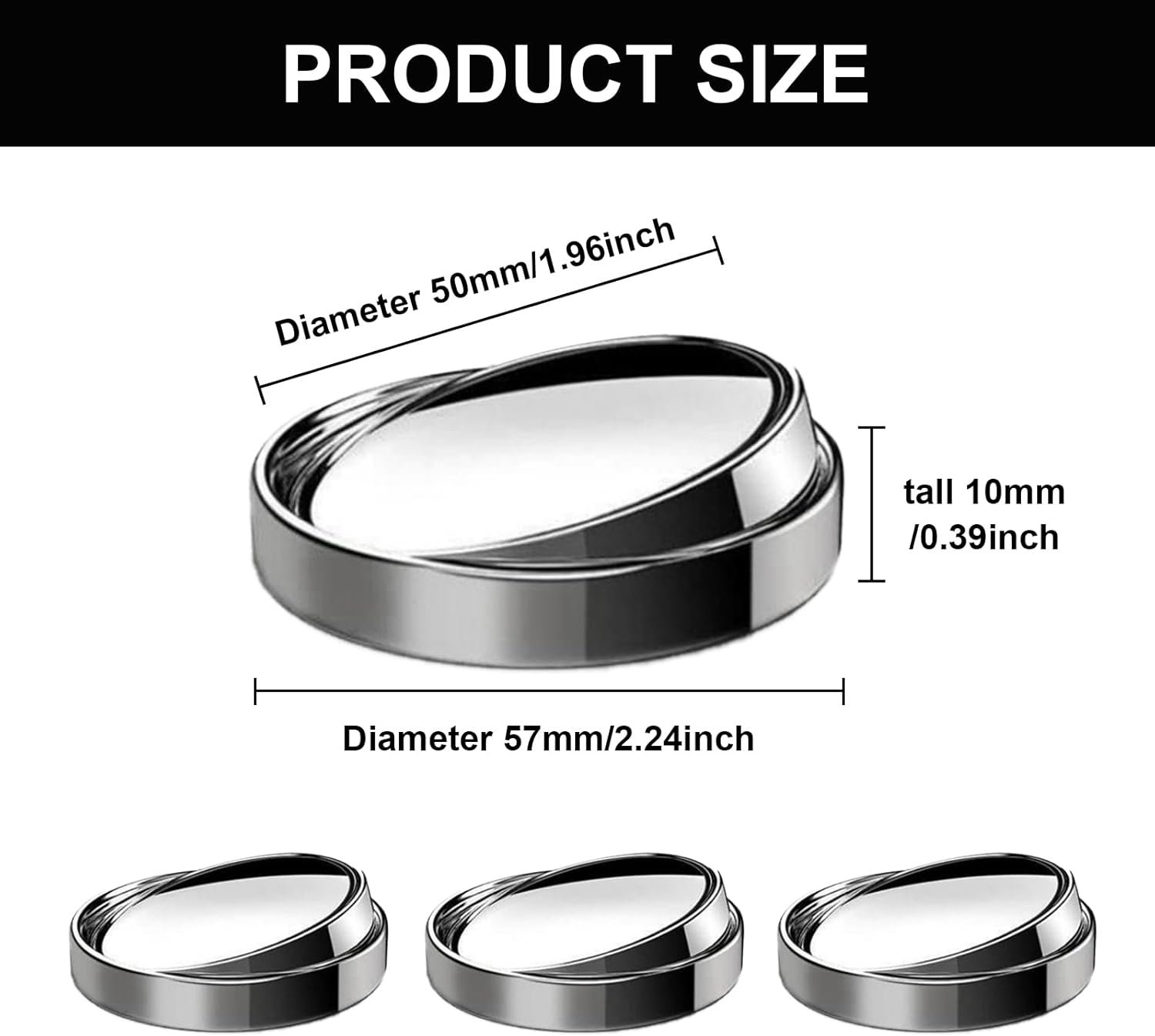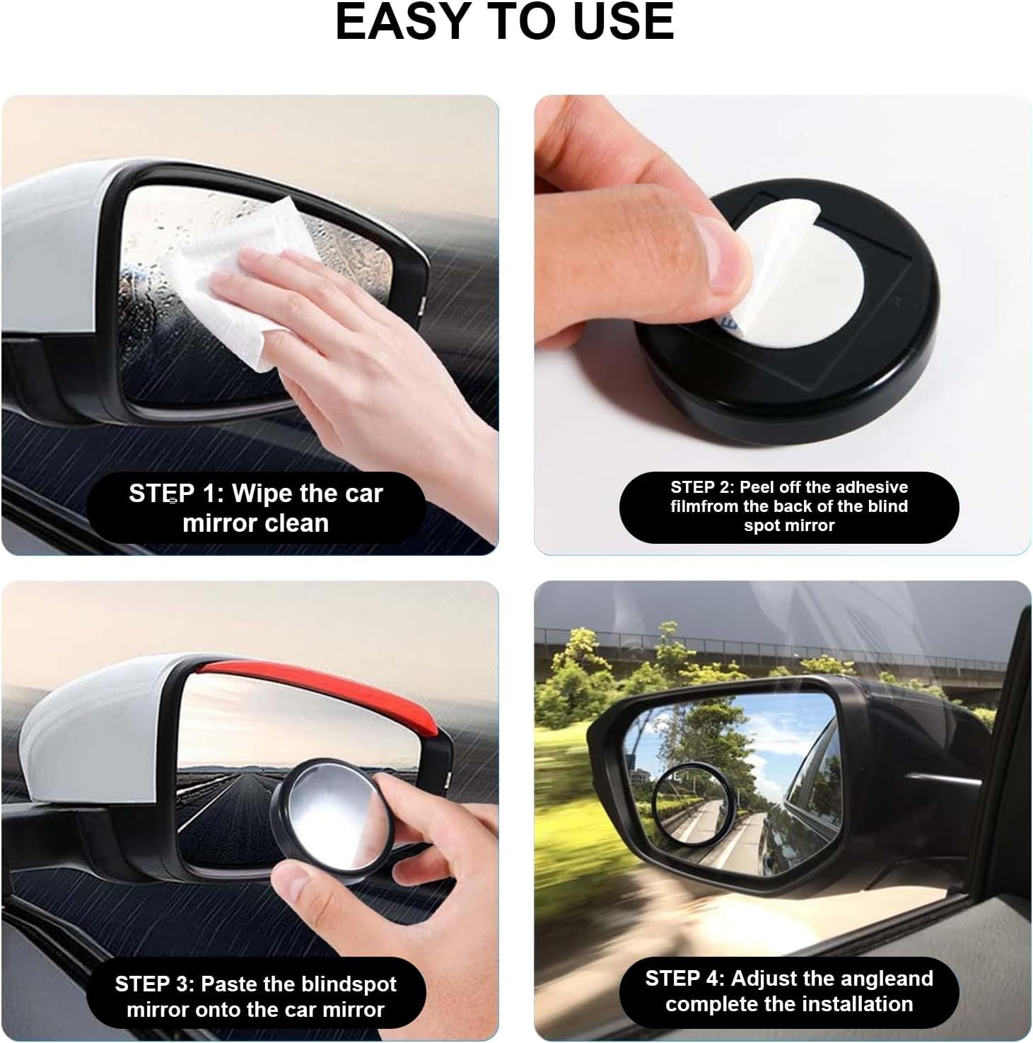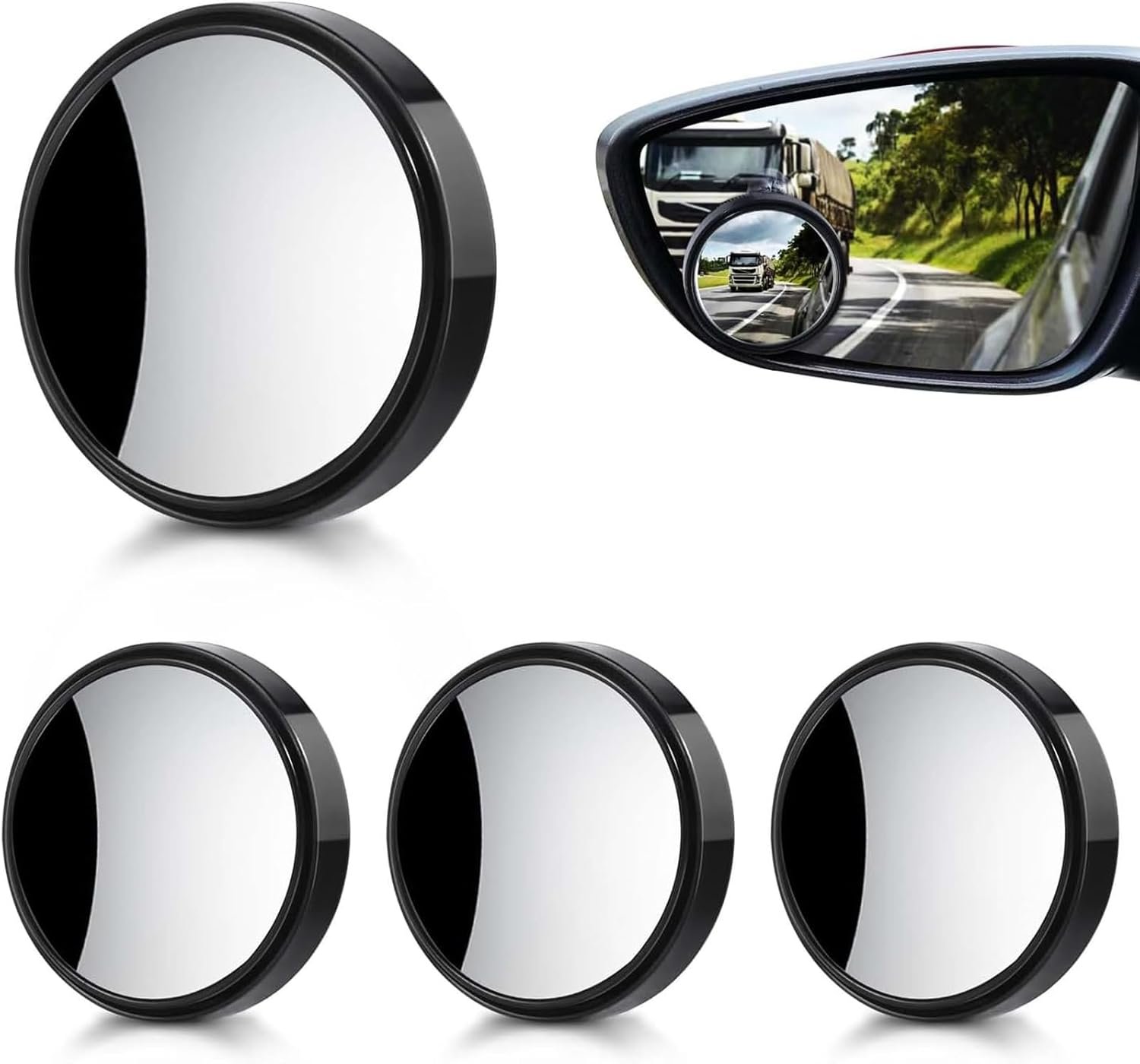 Pacote com 4 espelhos de ponto cego para carro – Espelho convexo ajustável de 360° redondo de 5 cm, espelho lateral grande angular de vidro HD para carros, SUV, caminhões – fácil instalação, segurança