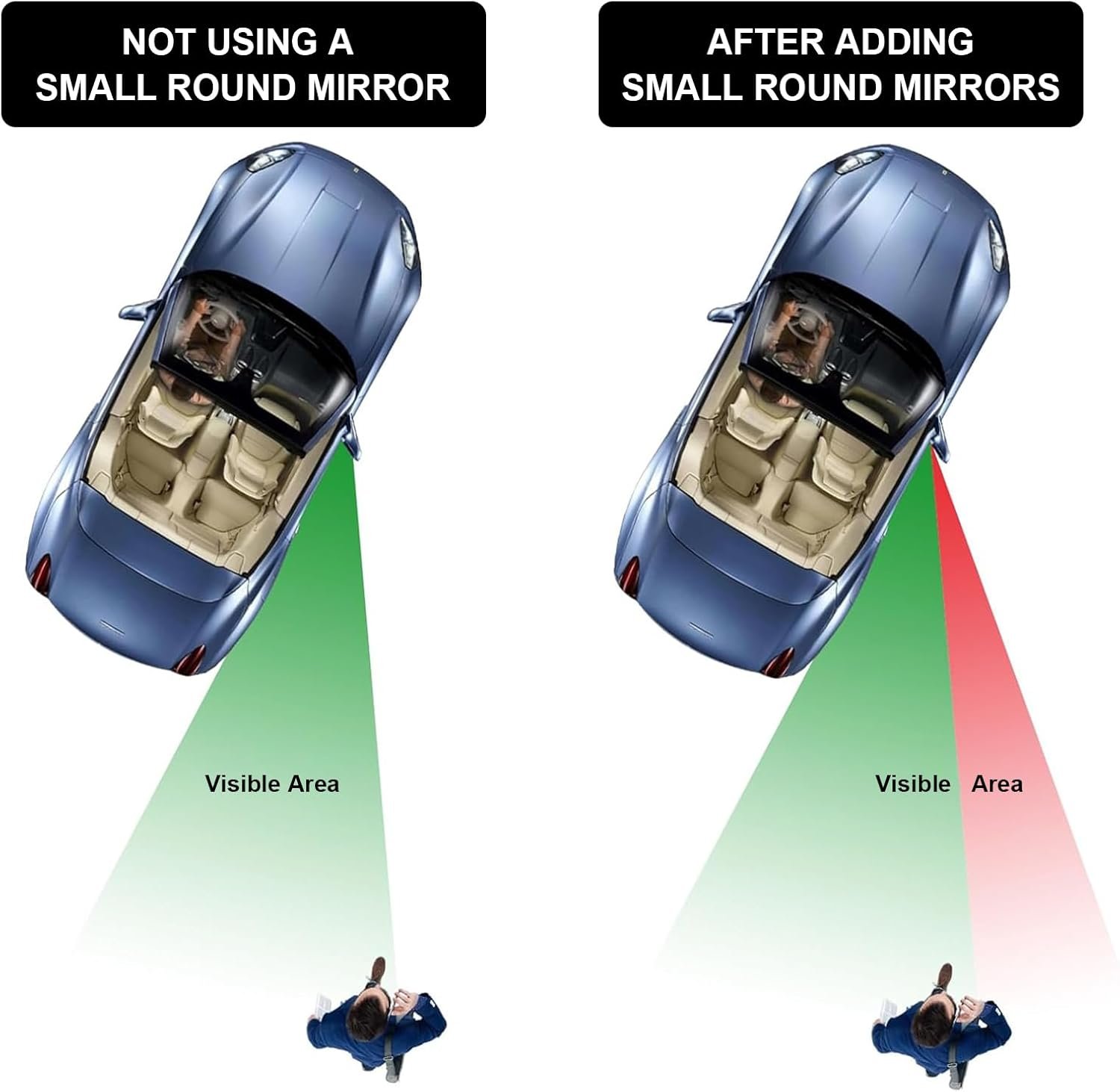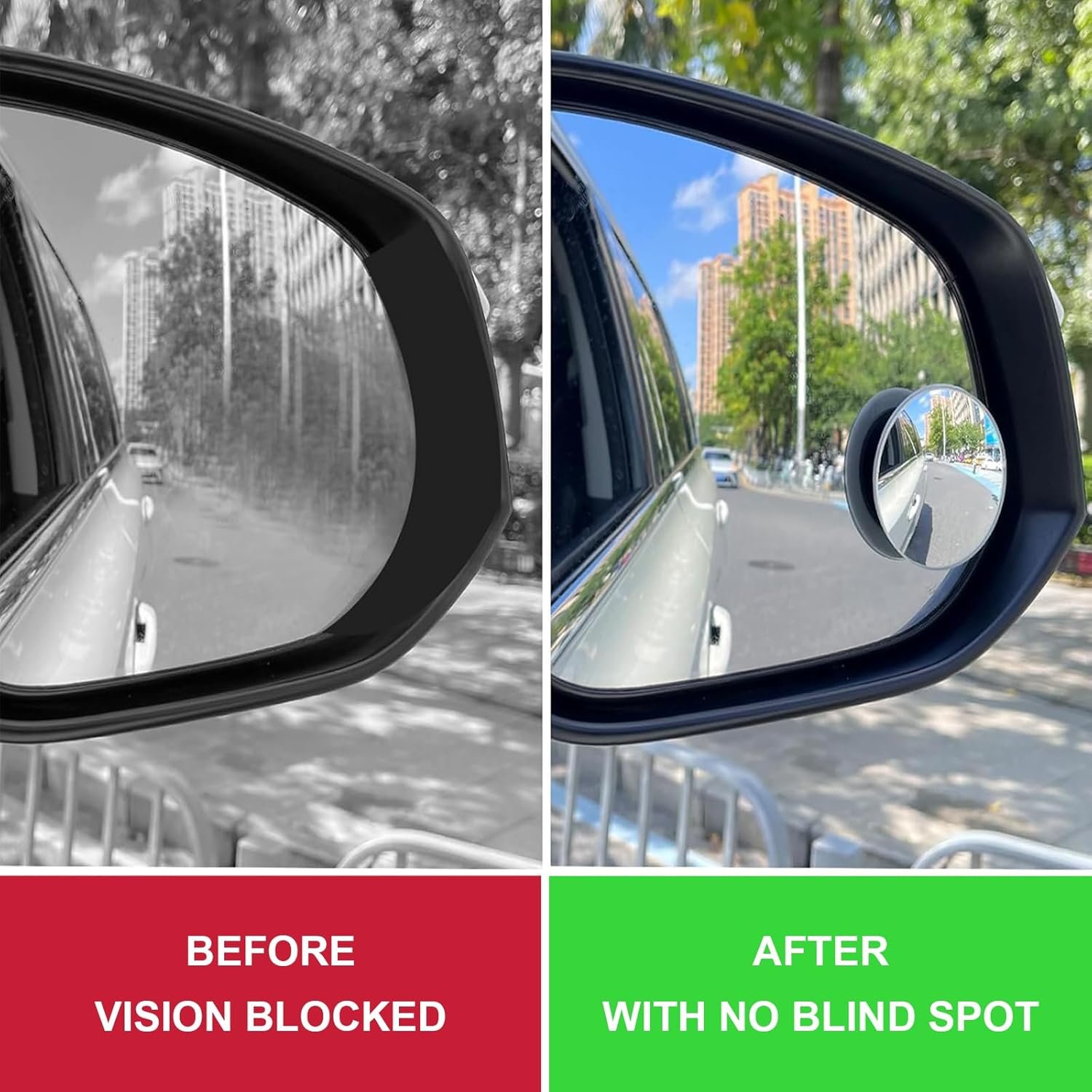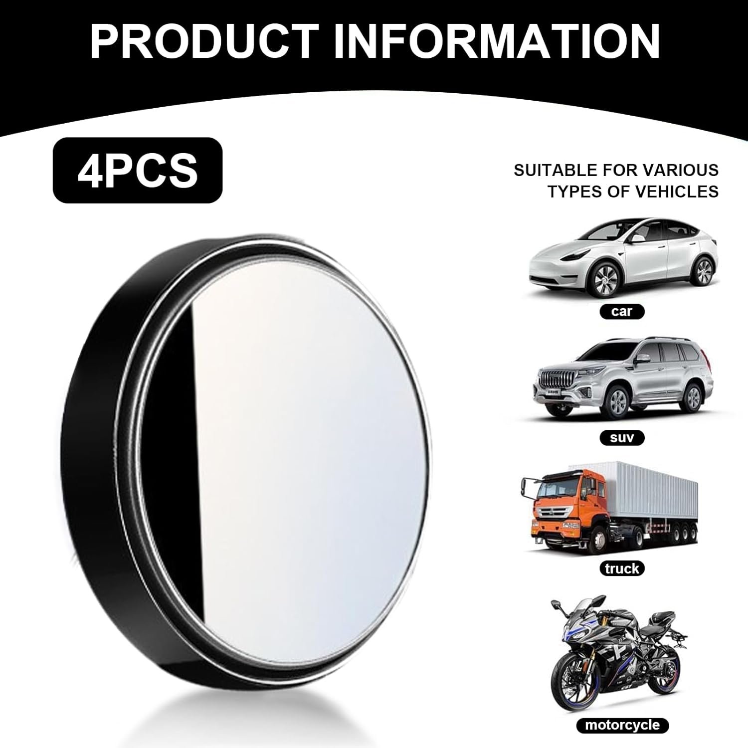 Pacote com 4 espelhos de ponto cego para carro – Espelho convexo ajustável de 360° redondo de 5 cm, espelho lateral grande angular de vidro HD para carros, SUV, caminhões – fácil instalação, segurança