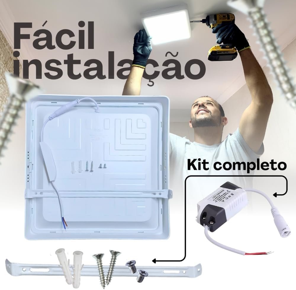 Painel Plafon LED de Sobrepor 25W Quadrado 29x29cm Slim, 6500K, Estrutura Metálica – Luz Branca Fria