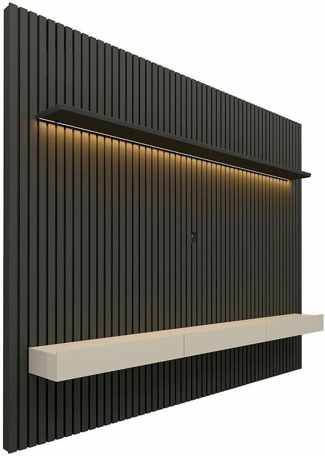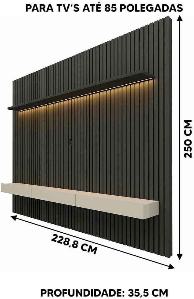 Painel Ripado TV até 85 Polegadas com LED 230cm Nobre Gelius Móveis Grafite/Off White