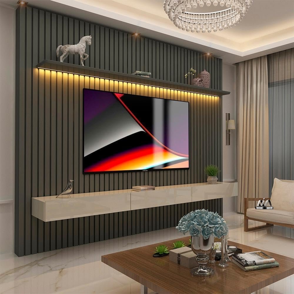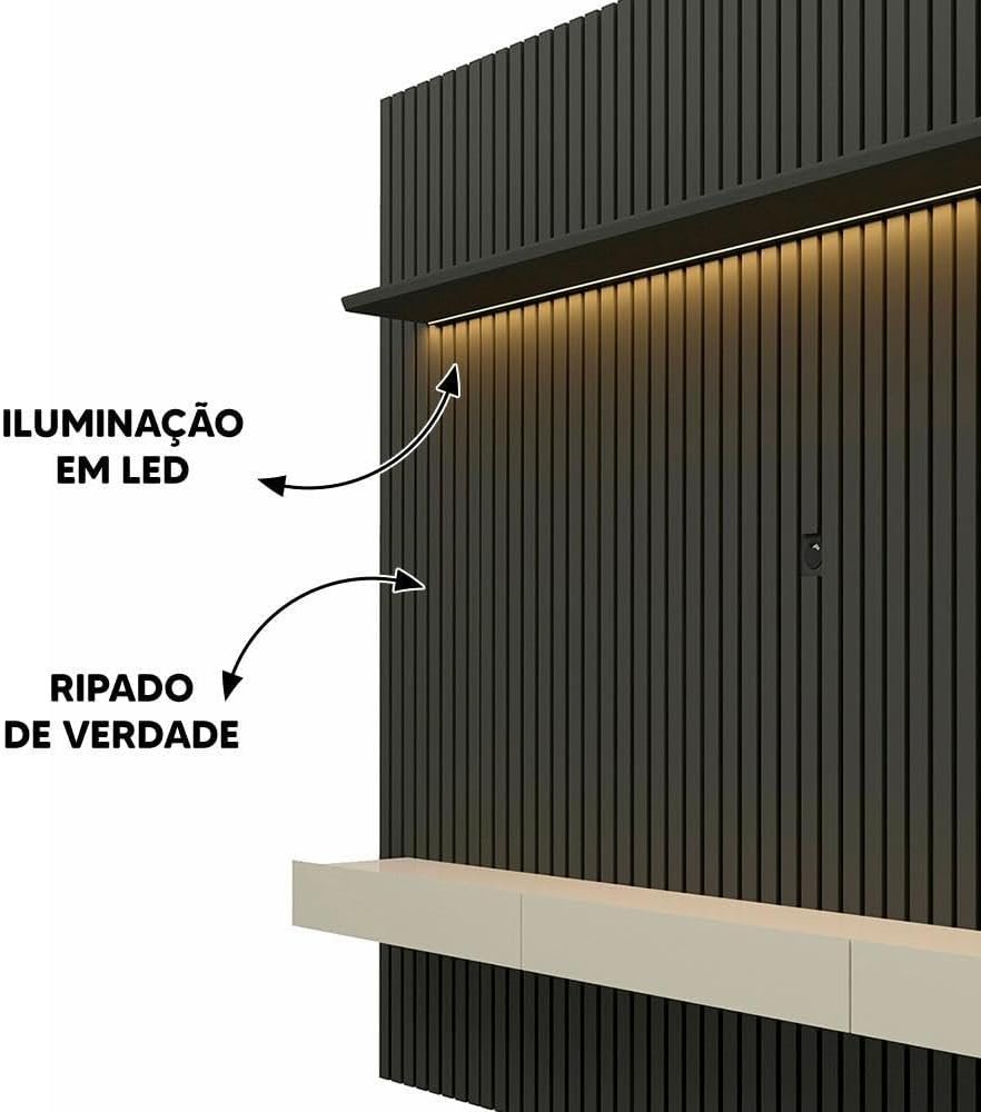 Descrição: Renove a decoração da sua sala com o elegante Painel Ripado TV até 85 Polegadas com LED 230cm Nobre Gelius Móveis. Seu design sofisticado e moderno em Grafite/Off White irá transformar o ambiente, proporcionando um toque de classe e funcionalidade. Compatível com TVs de até 85 polegadas, este painel é perfeito para quem busca qualidade, estilo e praticidade em um só produto. A iluminação em LED destaca ainda mais a beleza do móvel, criando um ambiente aconchegante e acolhedor para momentos de lazer em família ou com amigos. Adquira já o seu e surpreenda-se!