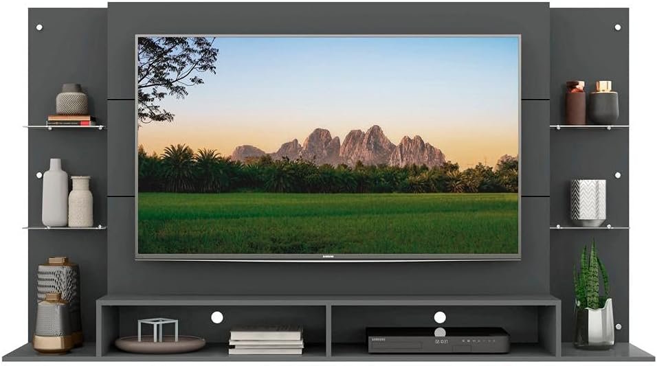 Painel Tv 60″ c/Prateleiras de Vidro Nairóbi Multimóveis GrafitePainel Tv 60″ c/Prateleiras de Vidro Nairóbi Multimóveis Grafite