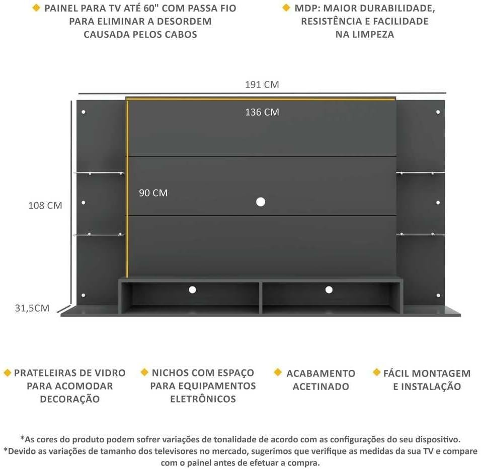 Seja o primeiro a avaliar “Painel Tv 60″ c/Prateleiras de Vidro Nairóbi Multimóveis Grafite”