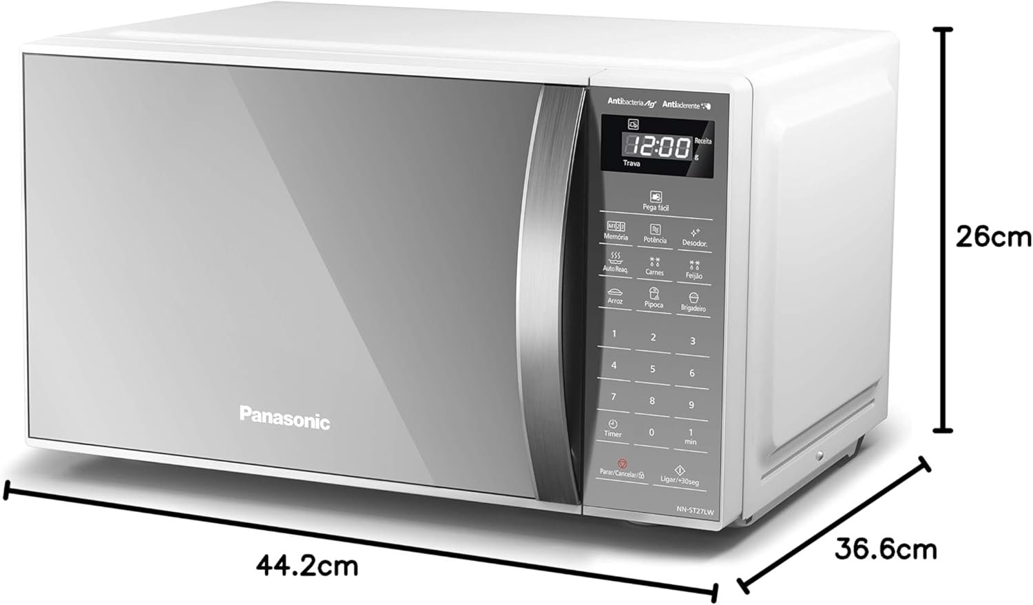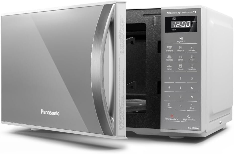 Leve para casa o Panasonic Micro-ondas 21L Branco Espelhado 127v NN-ST27LWRU e tenha praticidade e modernidade na sua cozinha!