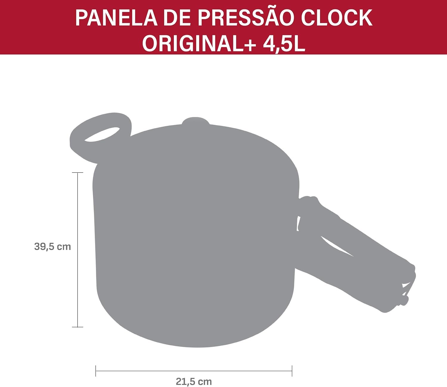 Prepare refeições rápidas e saborosas com a Panela de Pressão Clock Original de 4,5 Litros, com fechamento interno inovador para maior segurança e praticidade. Cozinhe alimentos até 70% mais rápido, economizando tempo e energia. Ideal para quem busca eficiência e qualidade na cozinha!