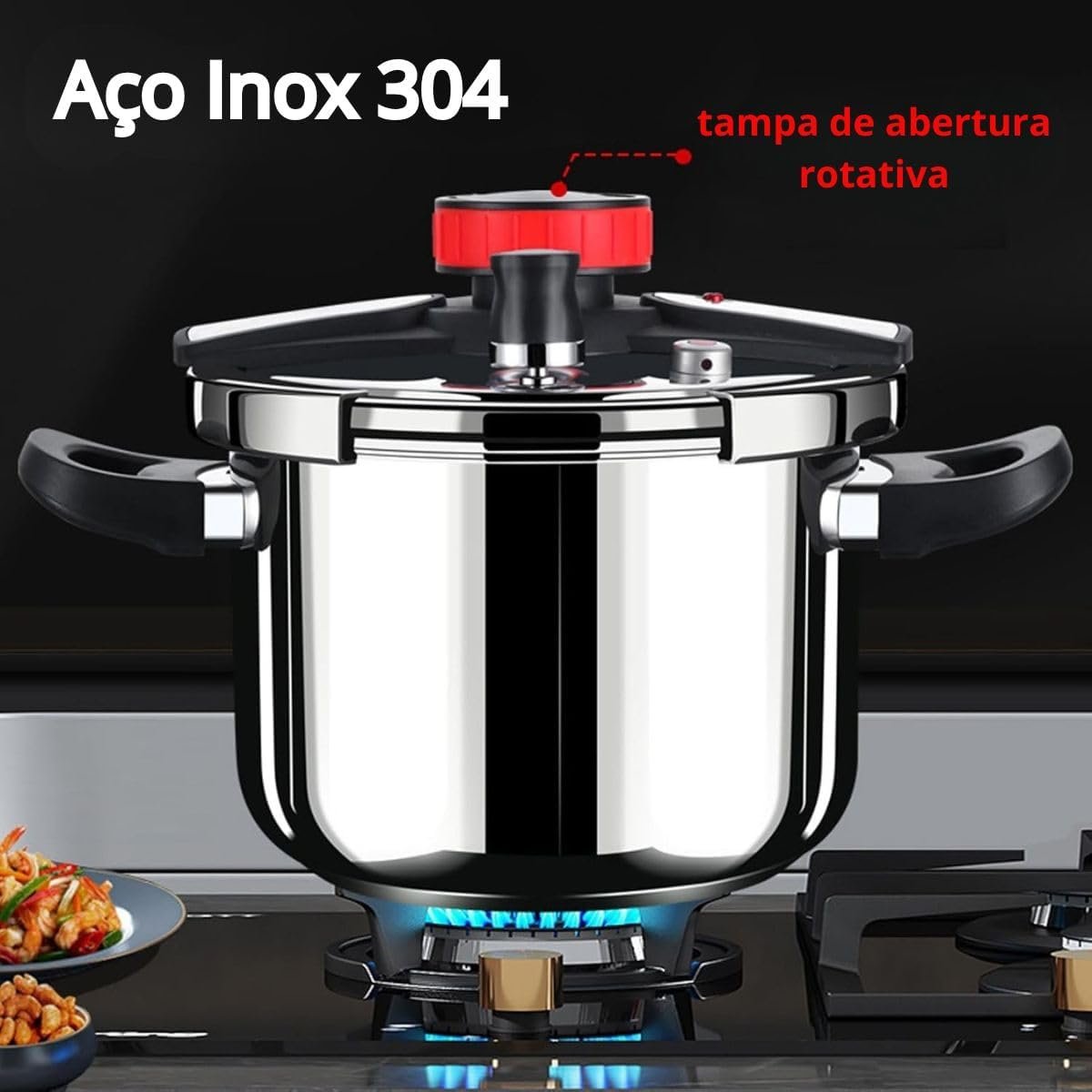 Panela de Pressão Inox 6 Litros com Trava de Segurança e Válvula Cozimento Rápido e Durável