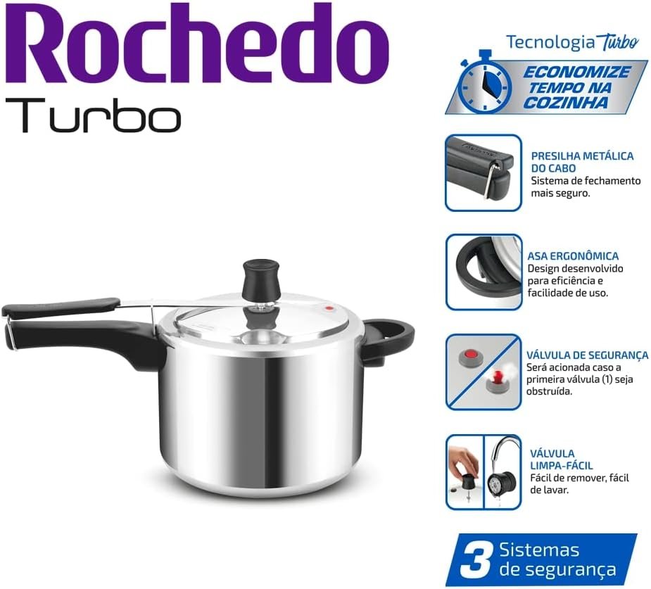 Panela de Pressão Rochedo Turbo Polida com Fechamento Interno e 4,5L de capacidade