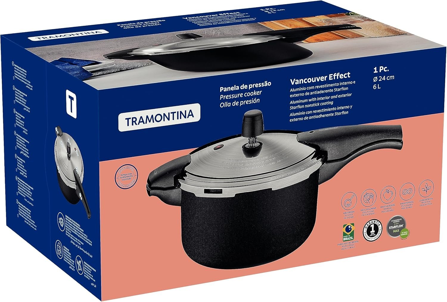 Panela de Pressão Tramontina Vancouver Effect em Alumínio com Revestimento Interno e Externo em Antiaderente Starflon Max Preto 24 cm 6 L