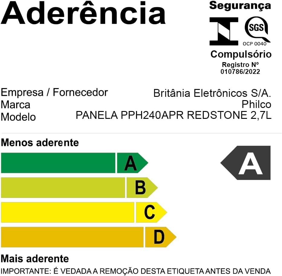 Panela Philco PPH240APR Redstone com Tampa de Vidro 2,7L