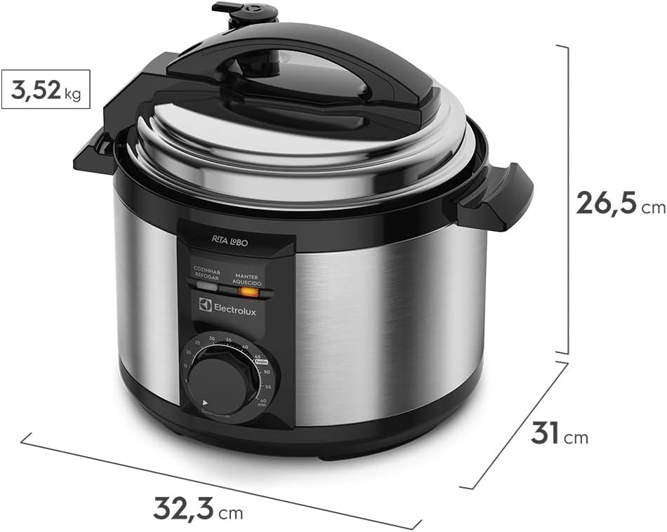 Seja o primeiro a avaliar “Panela pressão elétrica electrolux 3 Litros inox compacta feijão segura 9 travas segurança silenciosa PCE15 Rita Lobo 220v”