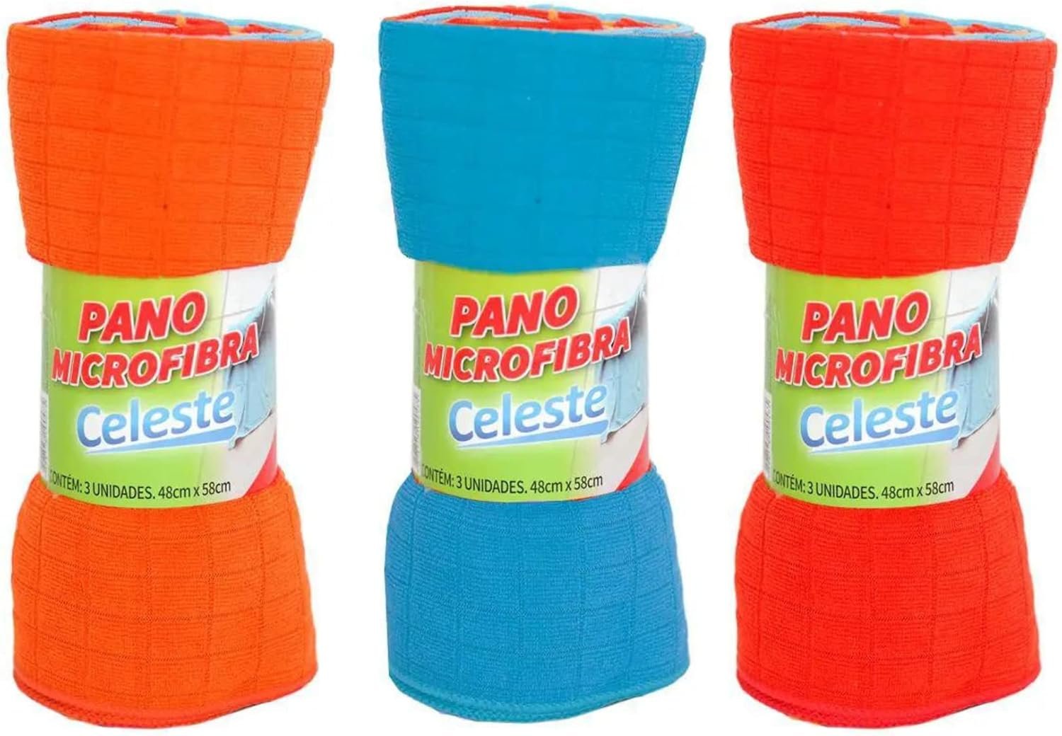 Pano de Chão Pacote 3 Cores Mistas em Microfibras 48x58cm