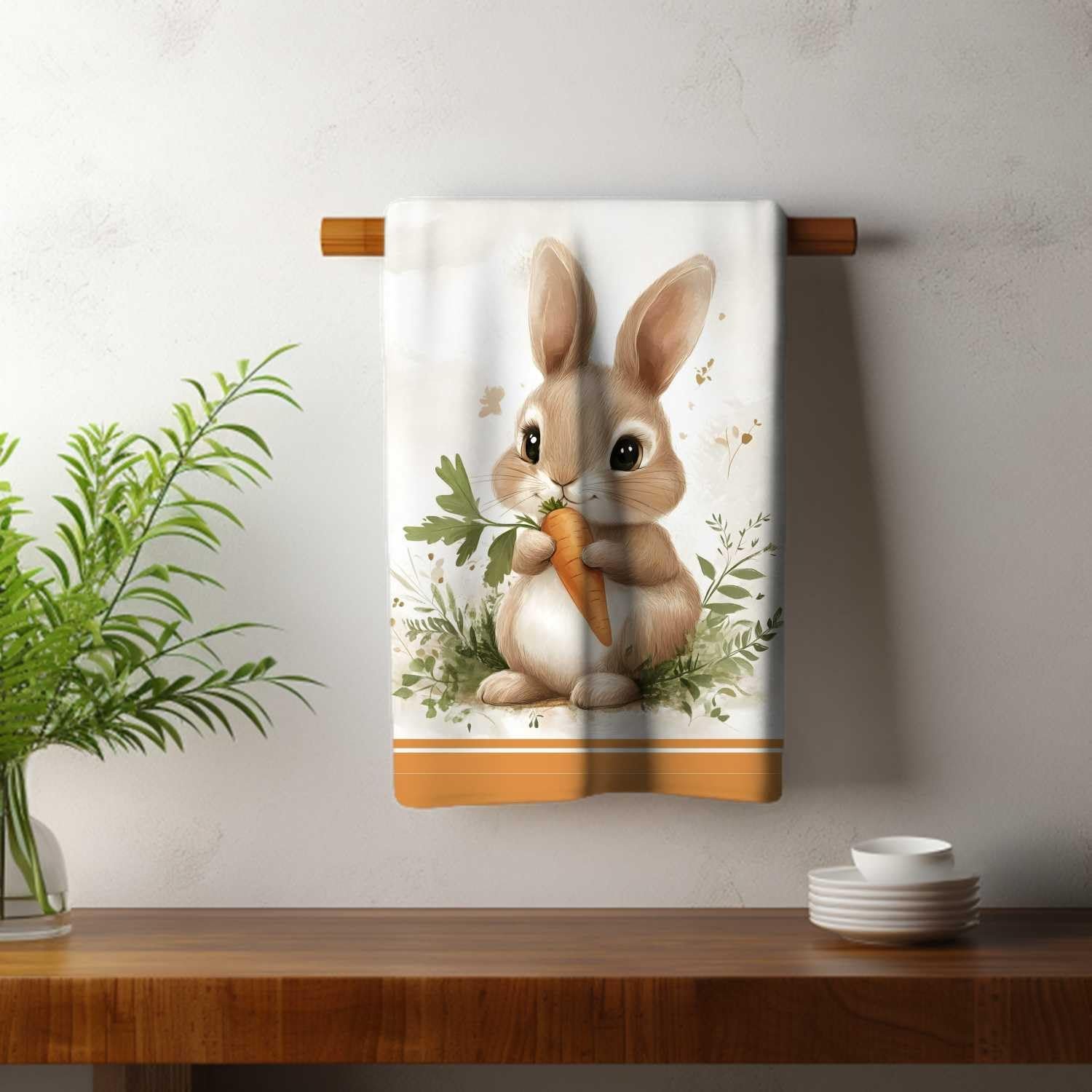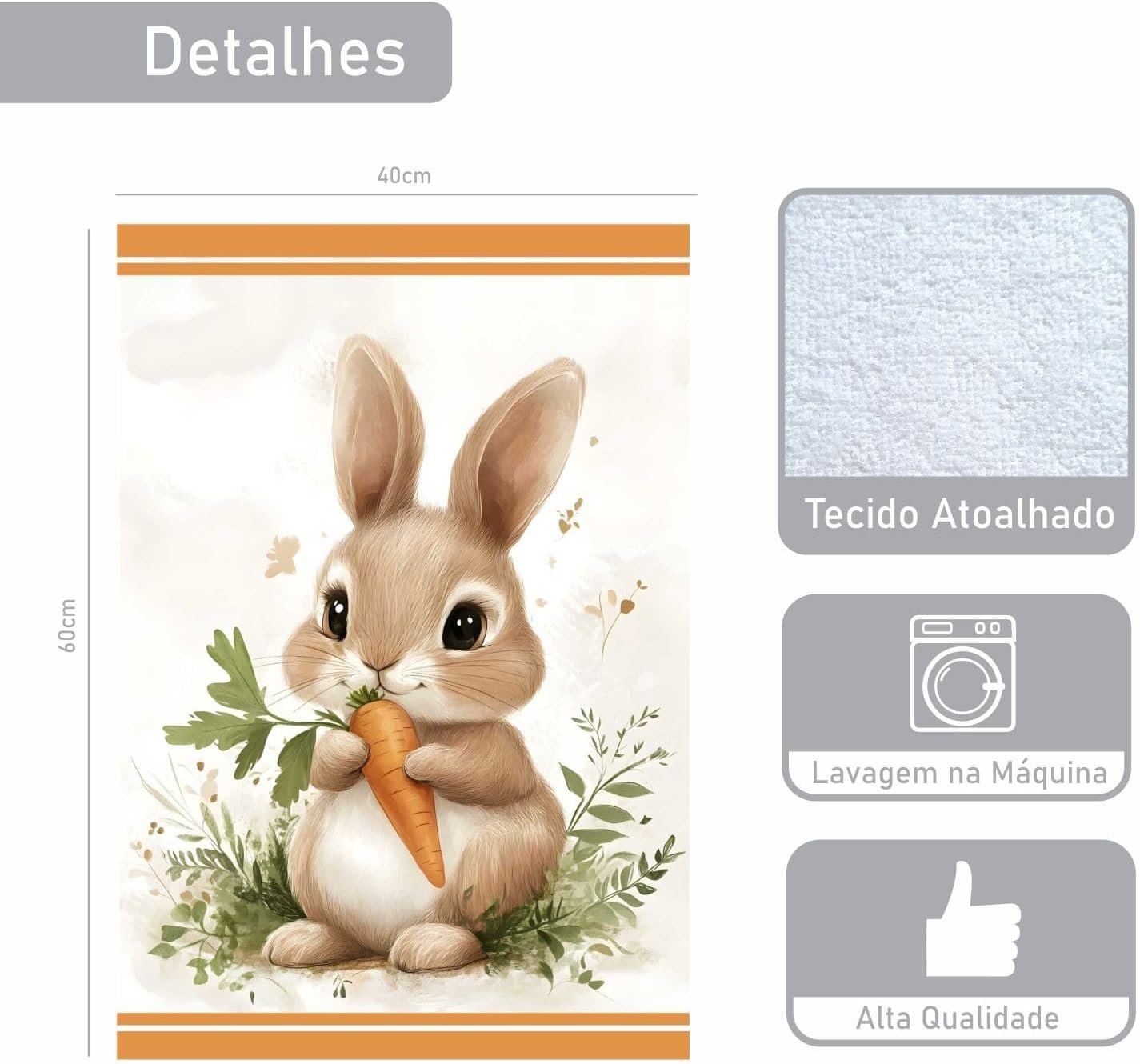 Pano de Prato Atoalhado Páscoa Coelho para Copa e Cozinha