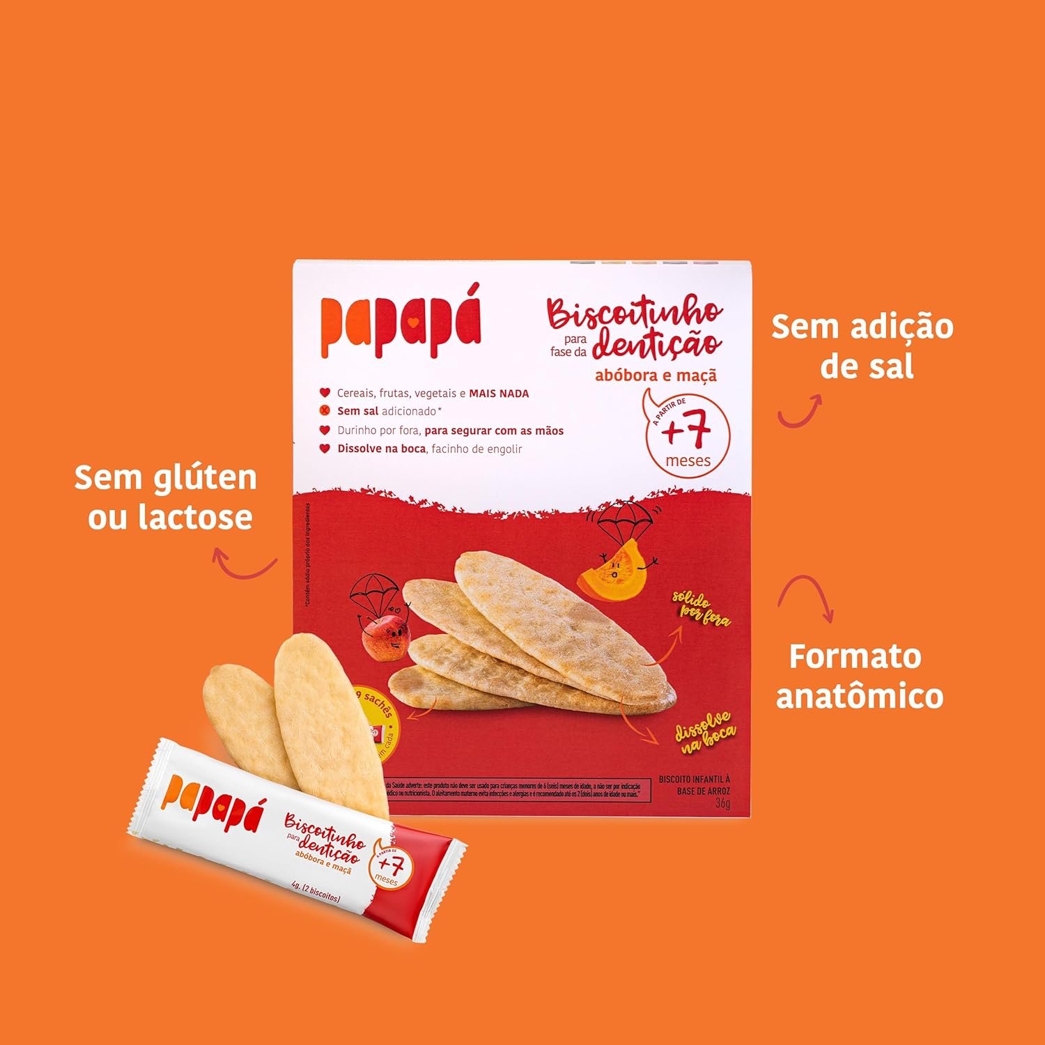 Título do Produto: Papapá, Biscoitinho para Fase de Dentição, Sabor Abóbora & Maçã, 36g, Sem Corantes, Sem Conservantes Artificiais