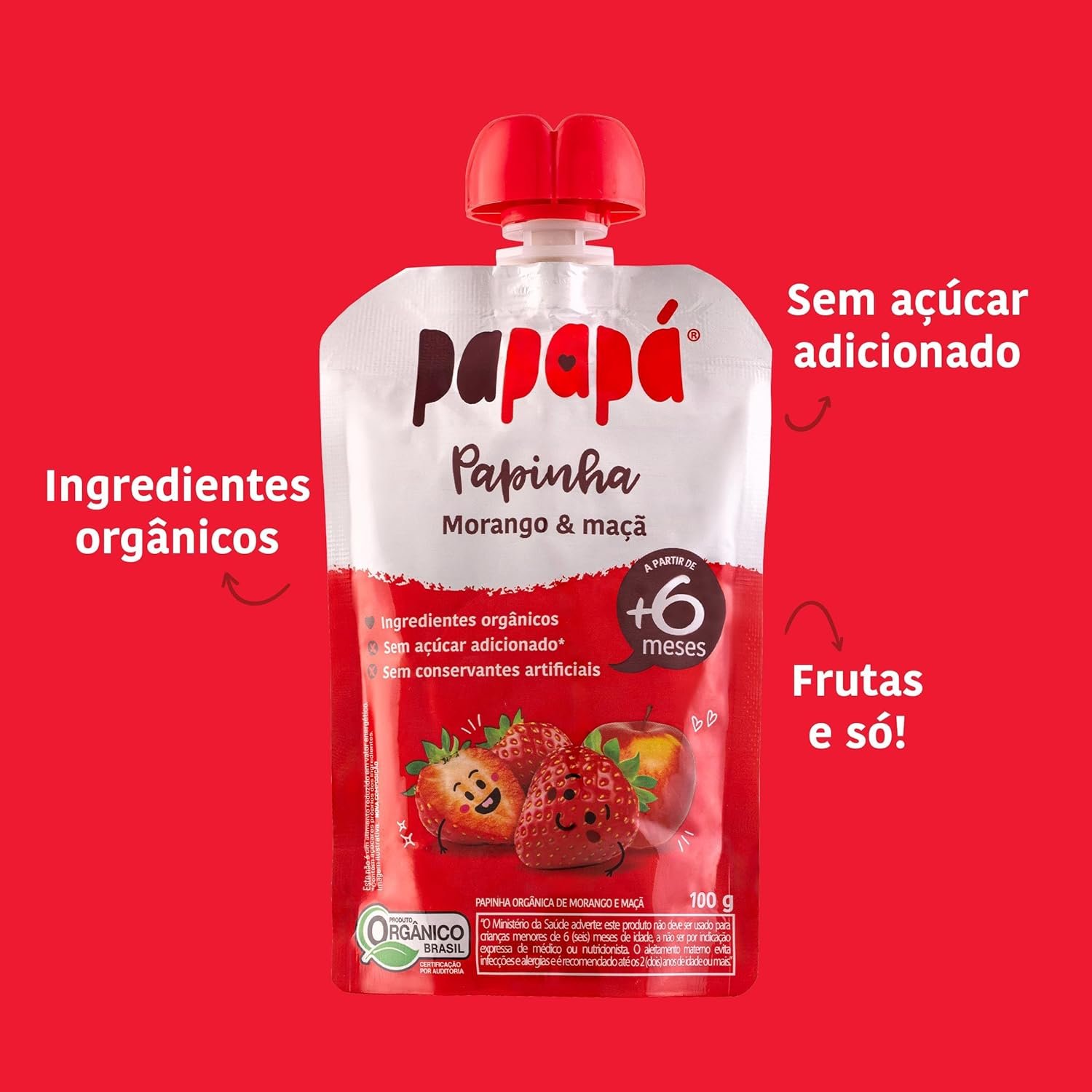 Papapá, Papinha Orgânica de Frutas, Sabor Morango e Maçã, 100g, Sem Açúcar Adicionado, Ingredientes NaturaisPapapá, Papinha Orgânica de Frutas, Sabor Morango e Maçã, 100g, Sem Açúcar Adicionado, Ingredientes Naturais