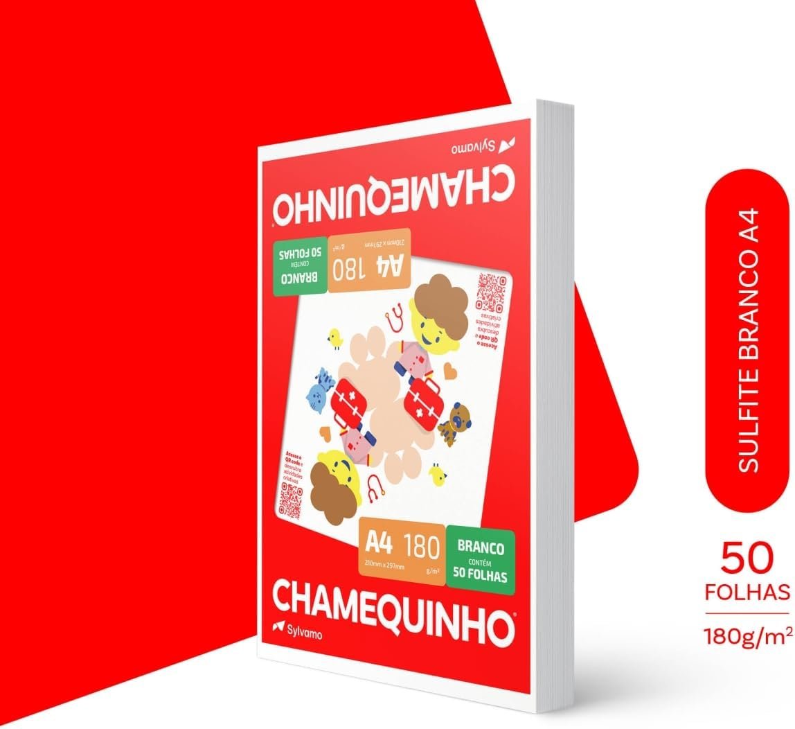 Papel Sulfite A4, Chamex, 29882, Chamequinho, 180 gramas, Branco, International Paper, 50 Folhas
