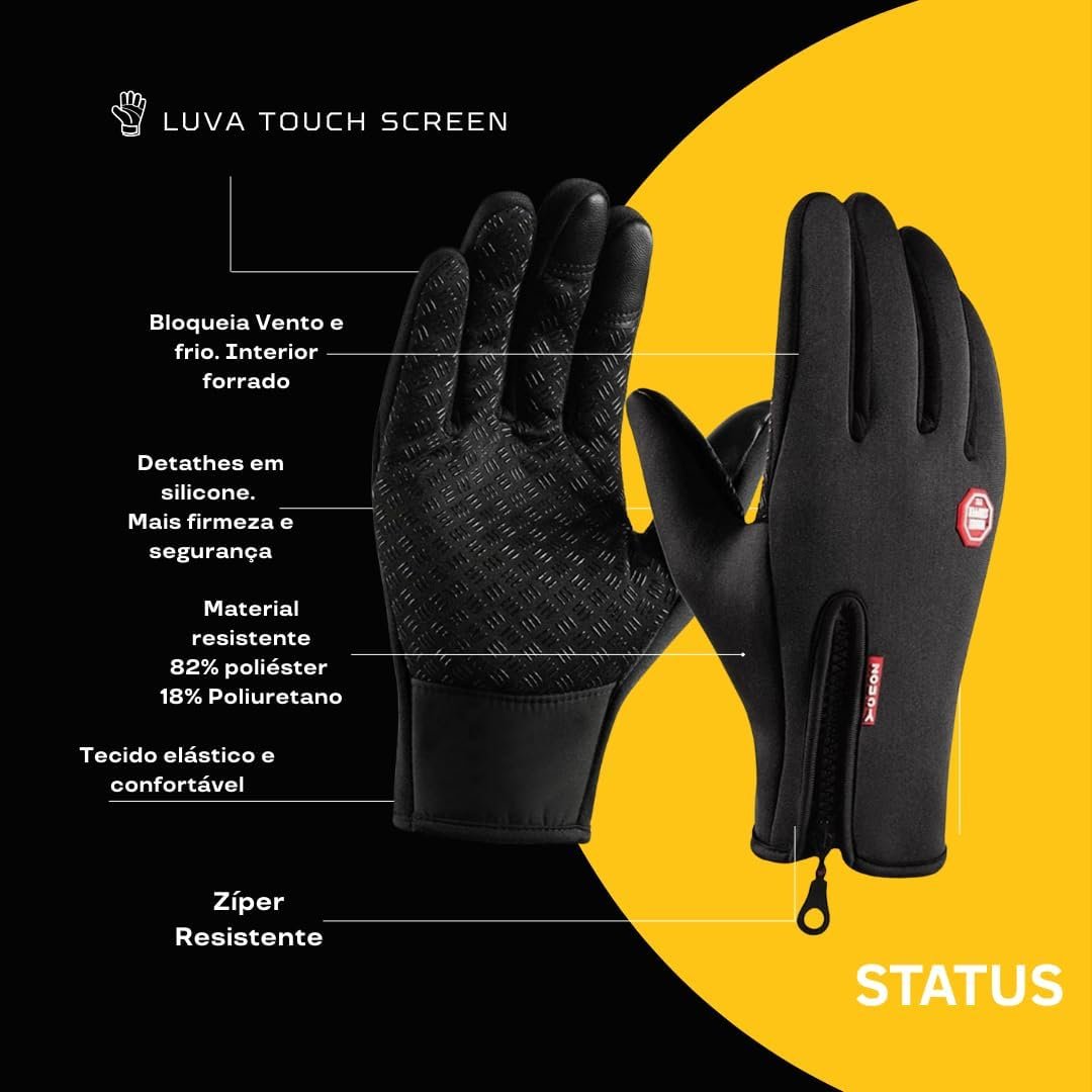 Par de Luvas Térmicas Touch Screen Semi-Impermeáveis e Resistentes ao Frio | Unissex para Motoqueiro, Motoboy, Ciclista, Bike, Delivery e Uso Diário