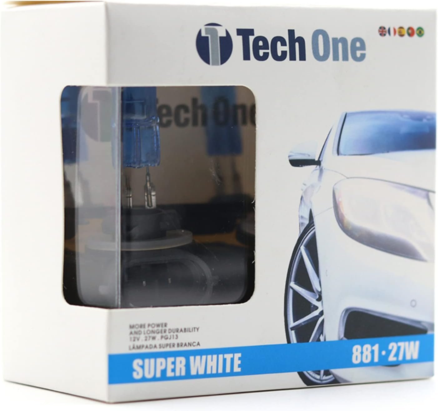 Par Lampadas Super Brancas 881 (H27) 8500K 27W Tech OnePar Lampadas Super Brancas 881 (H27) 8500K 27W Tech One