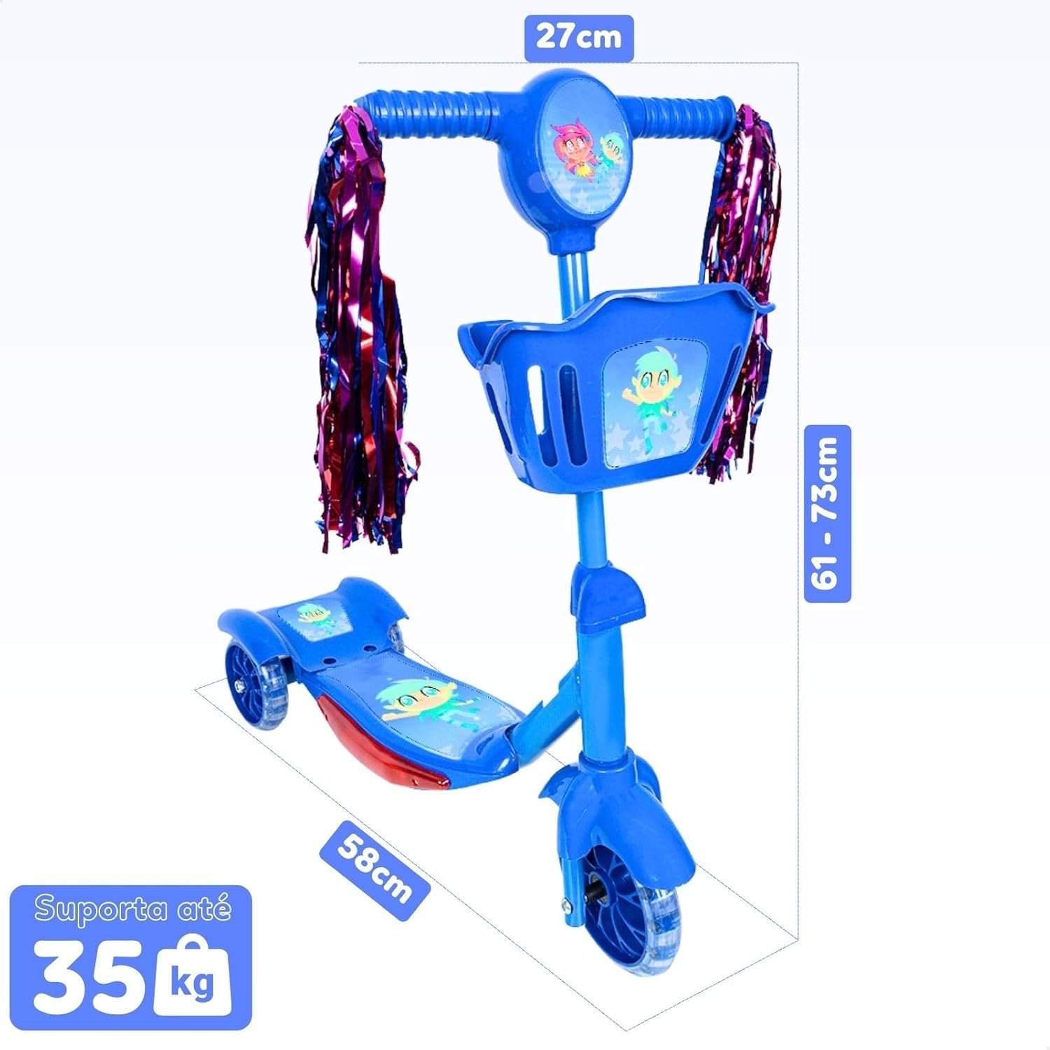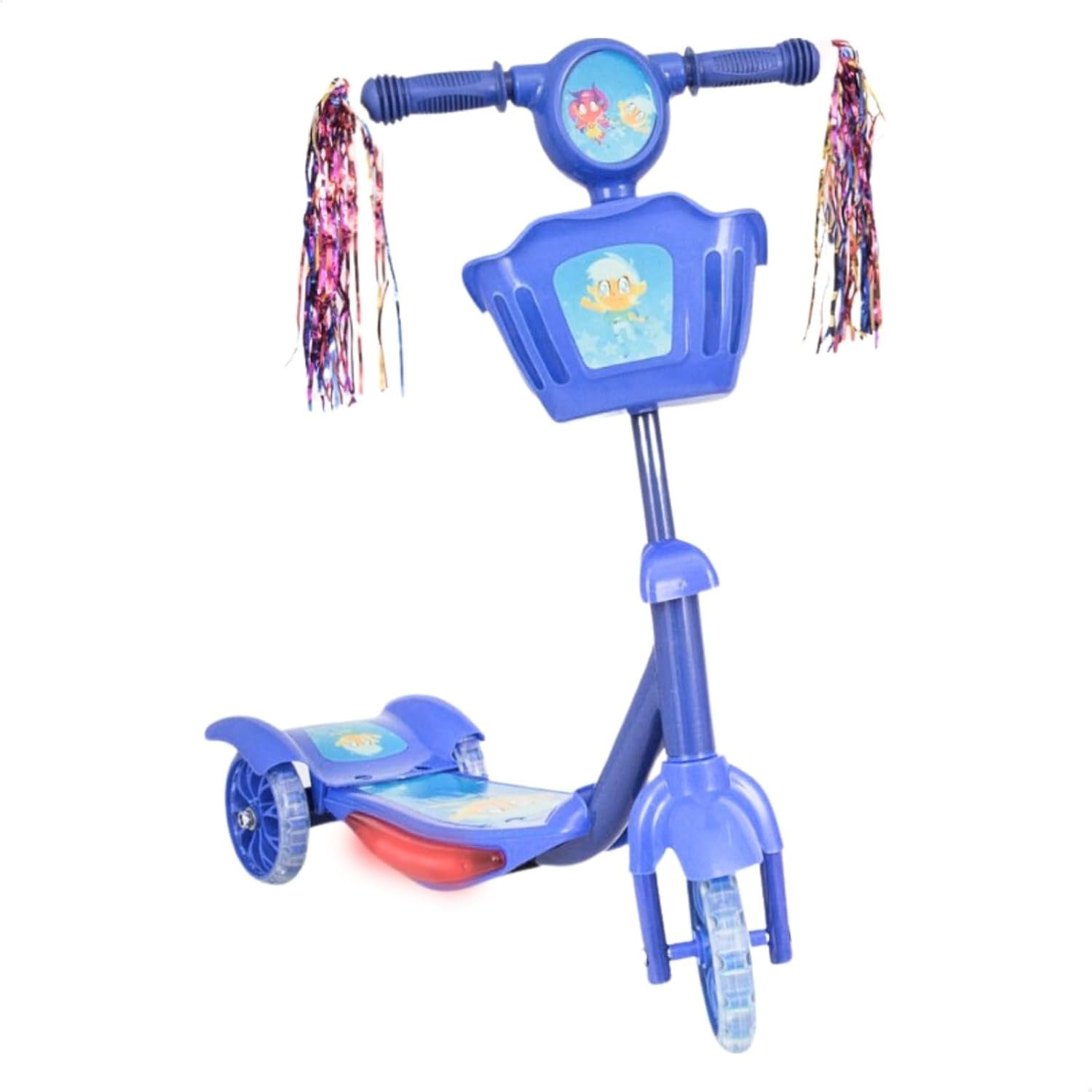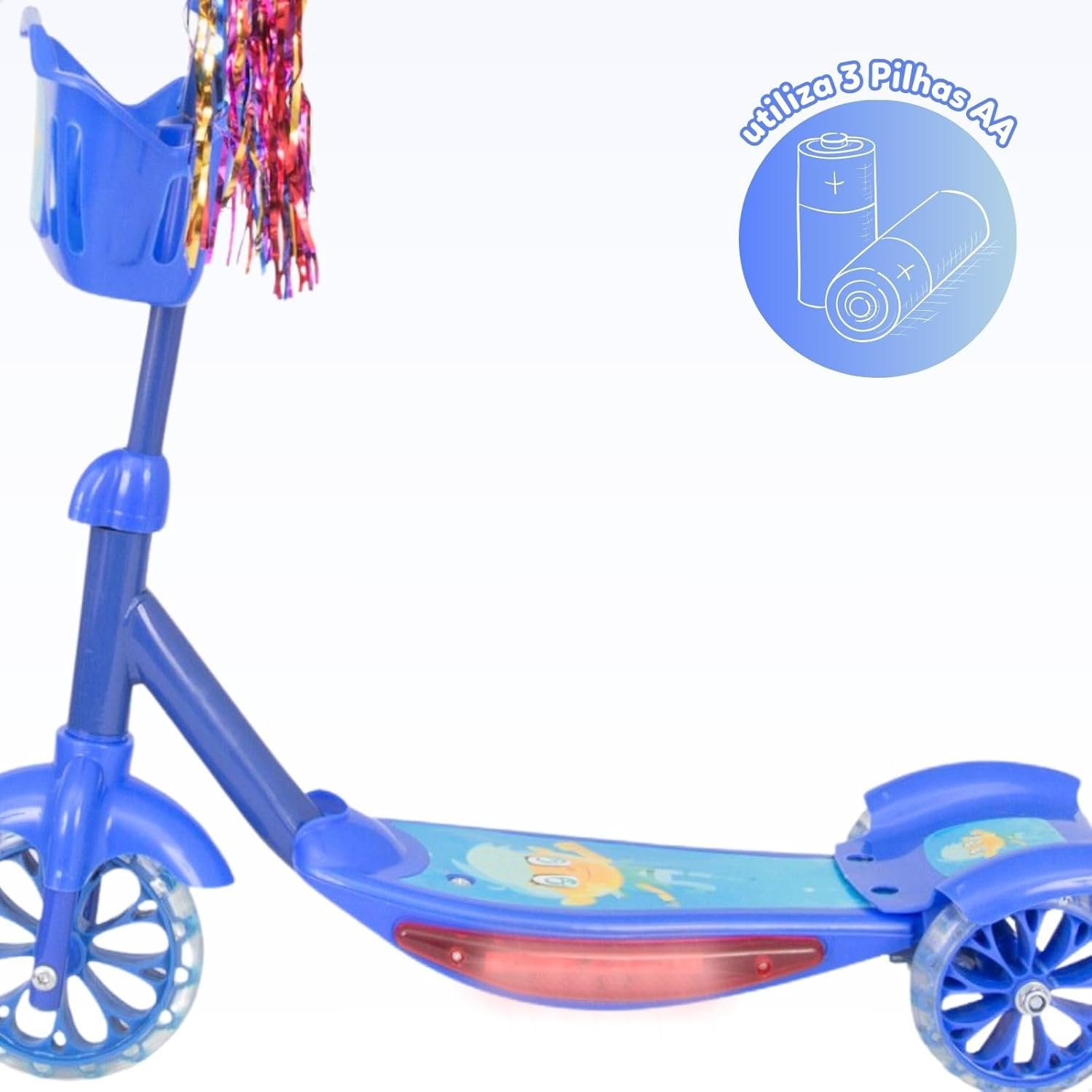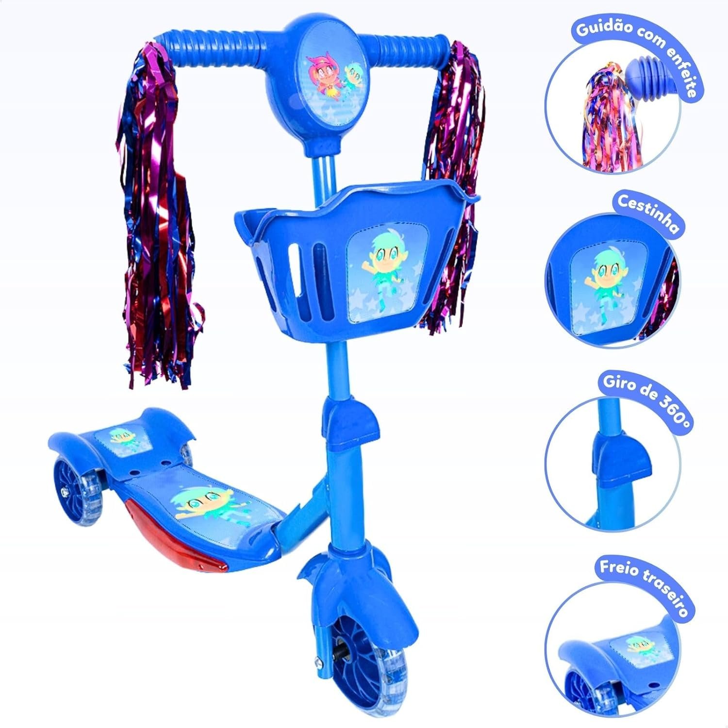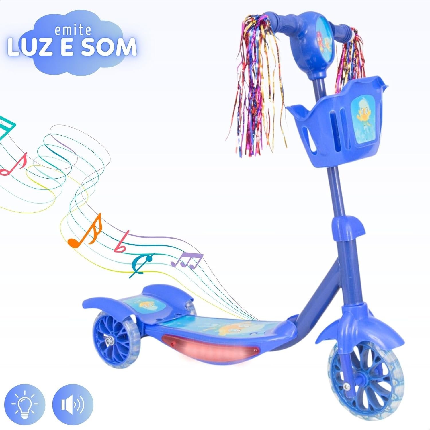Patinete Infantil 3 Rodas com Luzes Led e Cesta Emite Som Musical Altura Regulável e Freio Traseiro (AZUL)