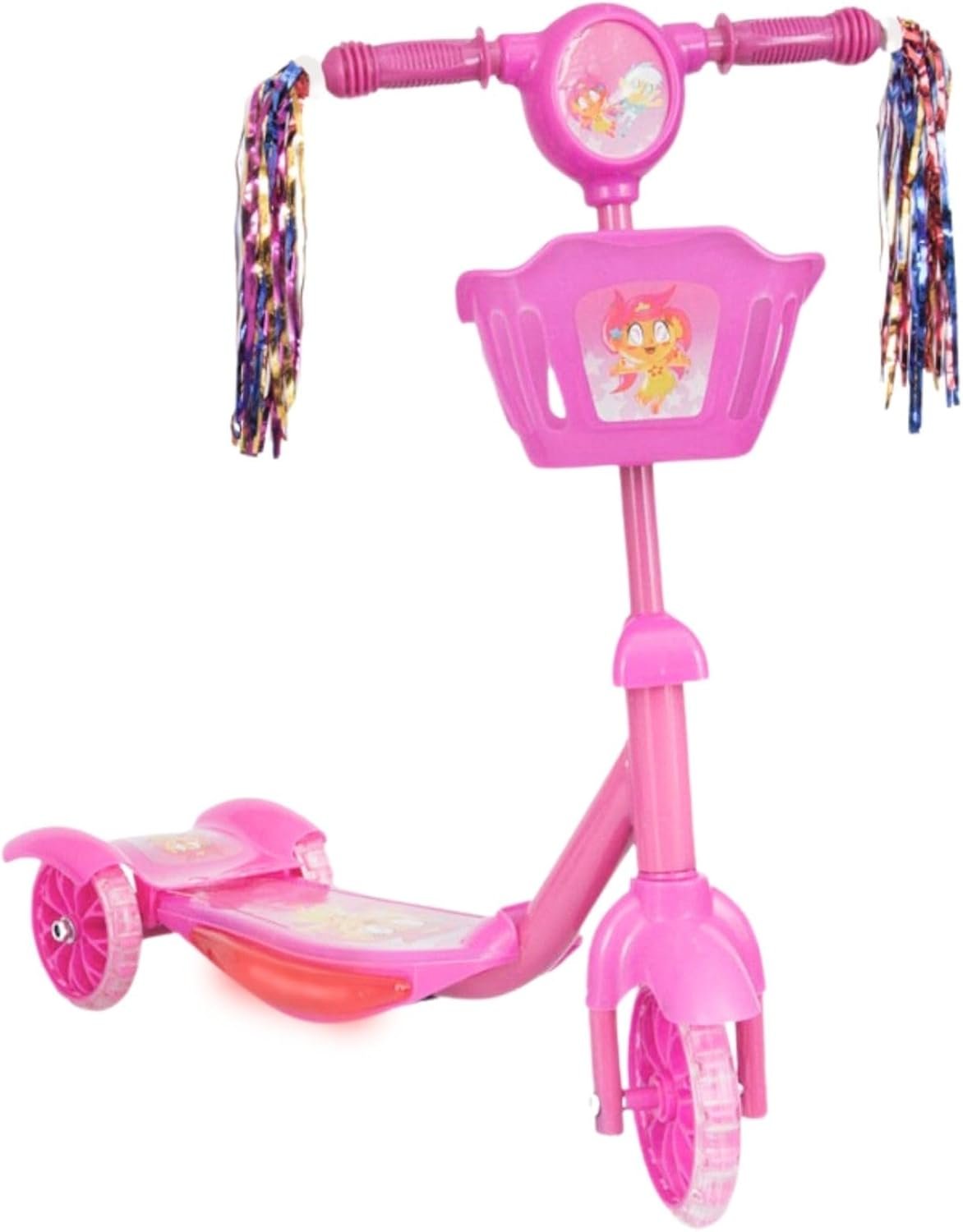 Patinete Infantil 3 Rodas com Luzes Led e Cesta Emite Som Musical Altura Regulável e Freio Traseiro (Rosa)Patinete Infantil 3 Rodas com Luzes Led e Cesta Emite Som Musical Altura Regulável e Freio Traseiro (Rosa)