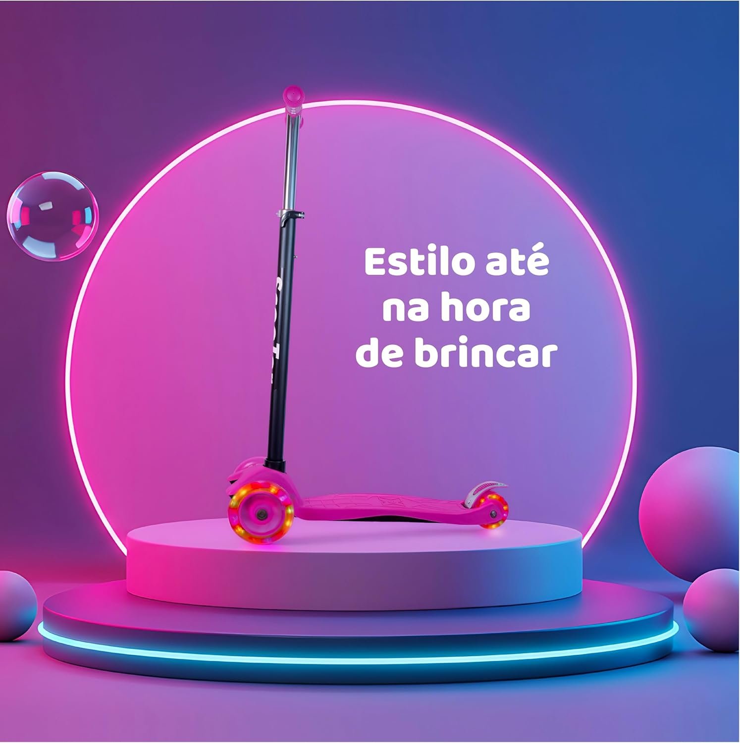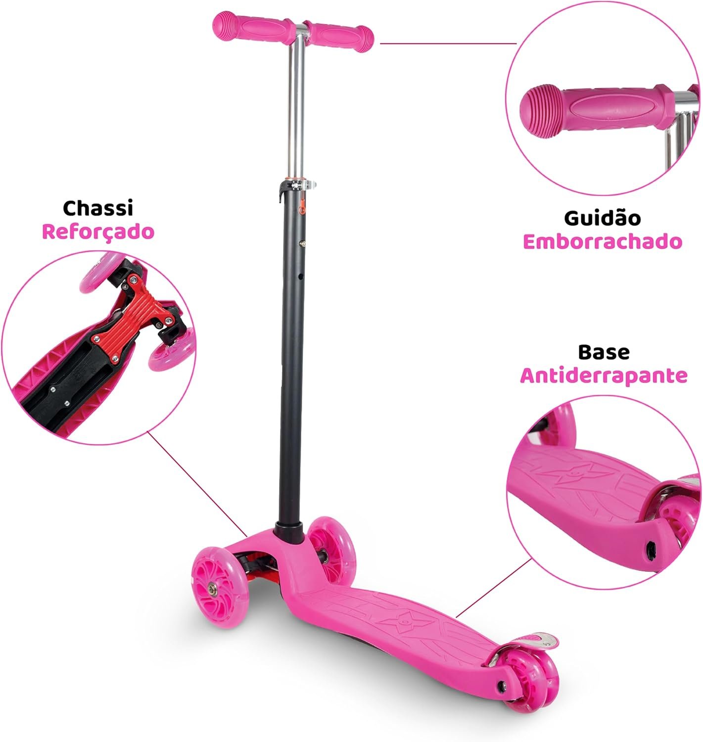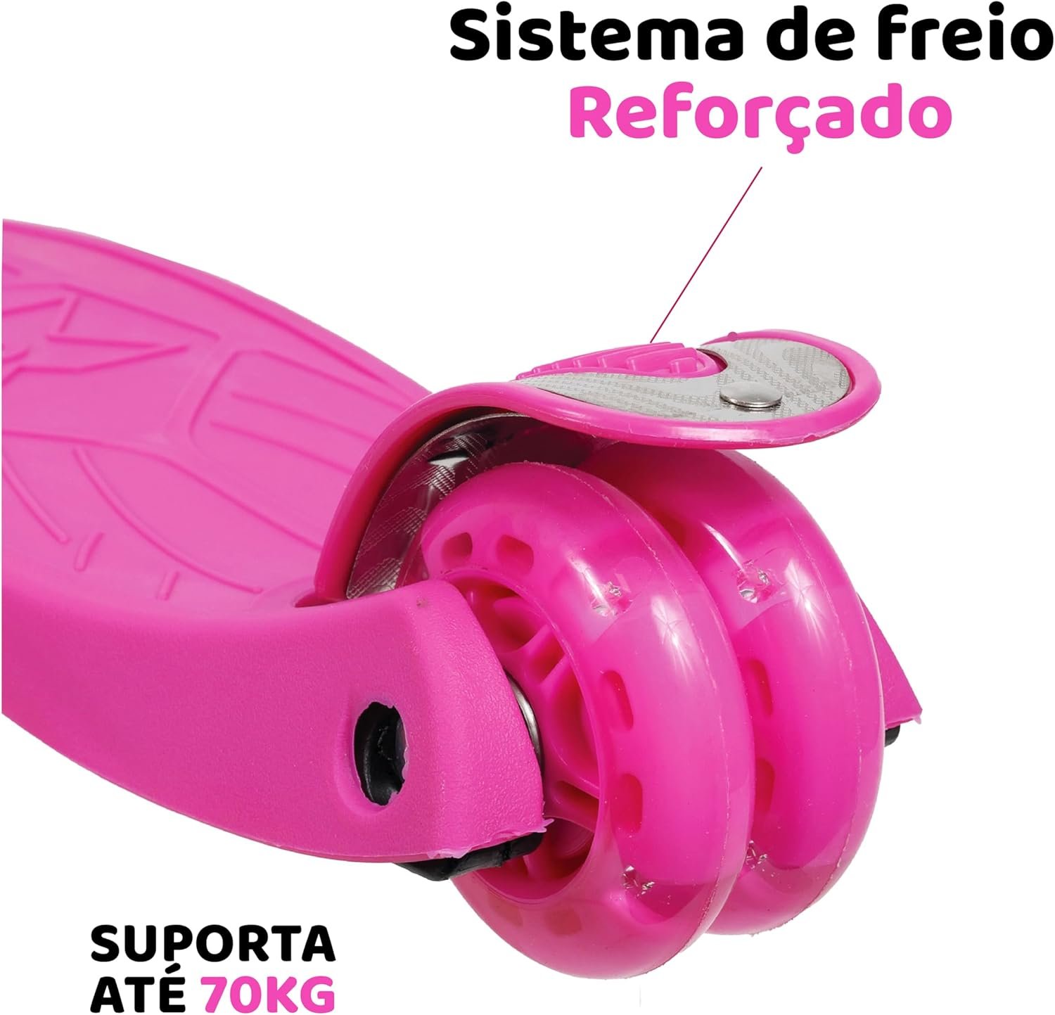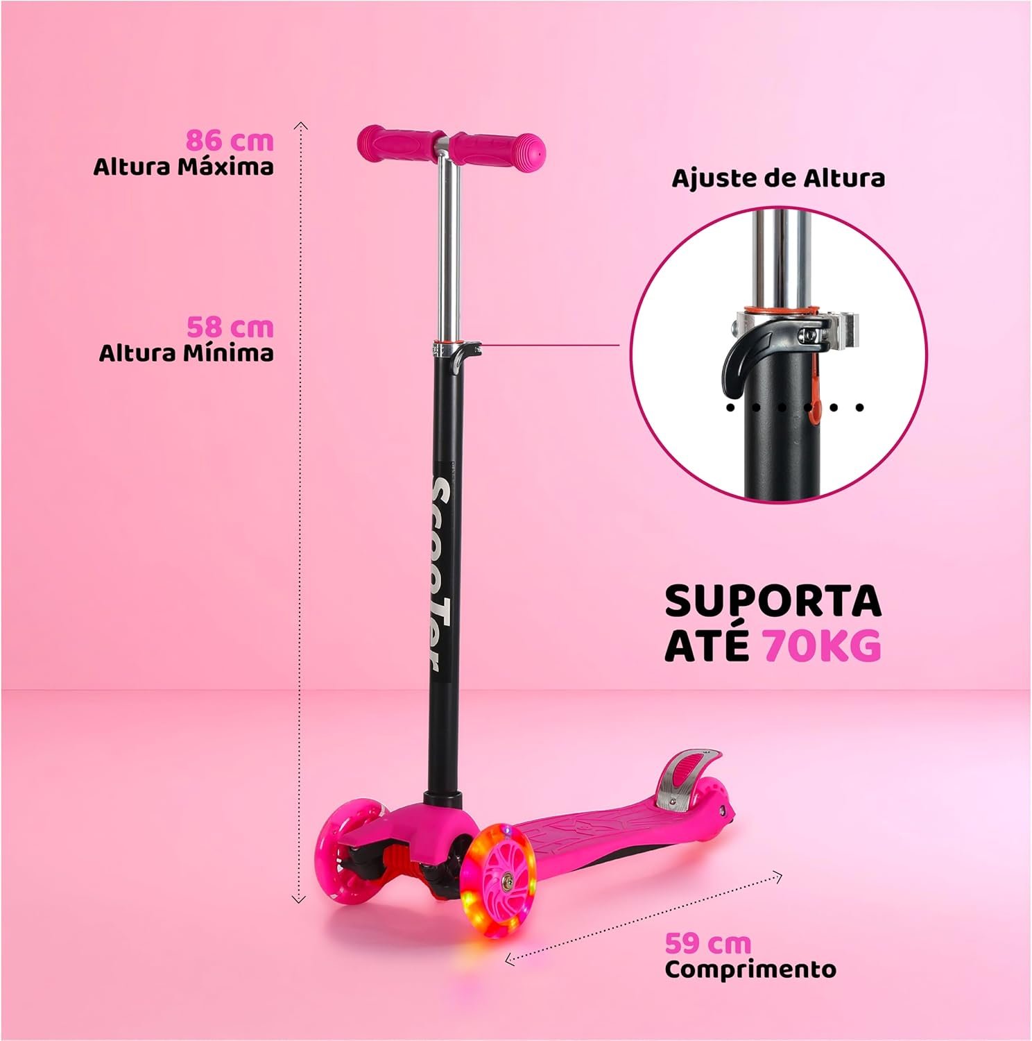 Patinete Infantil Unissex Dobrável e Ajustável 4 Rodas Com Luzes Em Led Até 70kg Azul/Preto/RosaPatinete Infantil Unissex Dobrável e Ajustável 4 Rodas Com Luzes Em Led Até 70kg Azul/Preto/Rosa