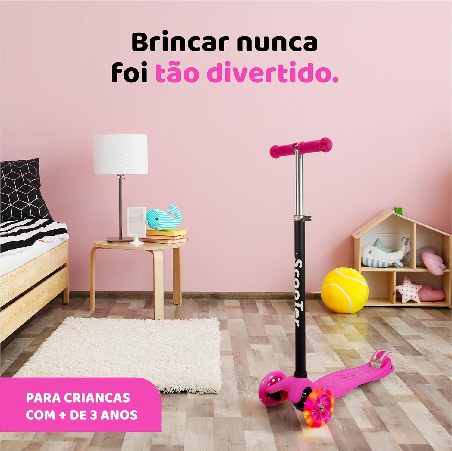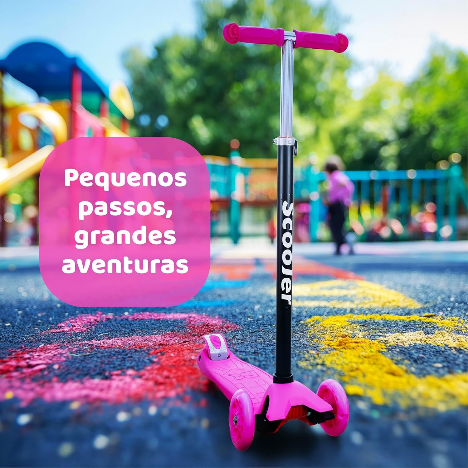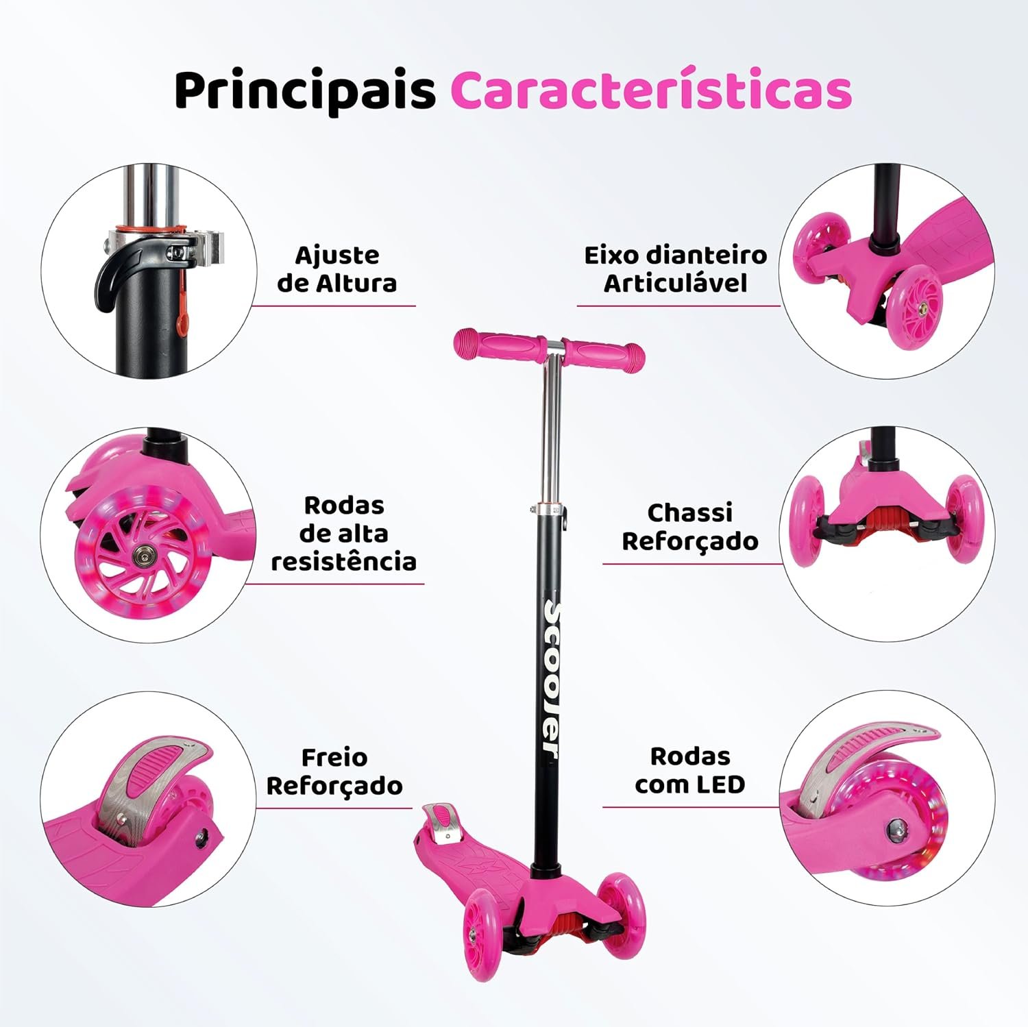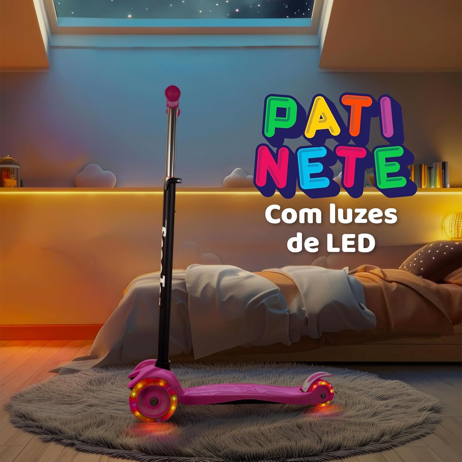 Patinete Infantil Unissex Dobrável e Ajustável 4 Rodas Com Luzes Em Led Até 70kg Azul/Preto/RosaPatinete Infantil Unissex Dobrável e Ajustável 4 Rodas Com Luzes Em Led Até 70kg Azul/Preto/Rosa