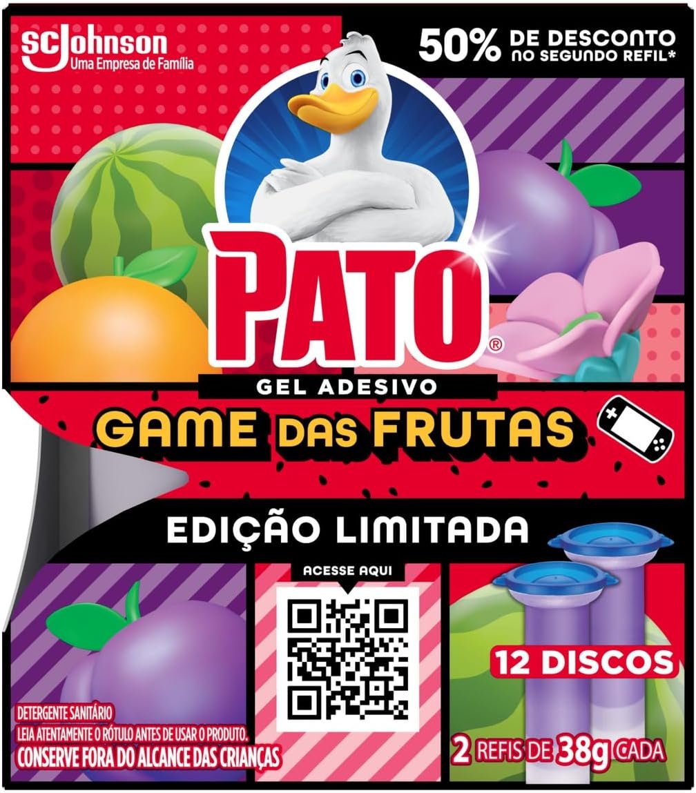 Pato Desodorizador Sanitário Gel Adesivo 2 Refis Game das Frutas, Limpeza Banheiro, 12 Discos