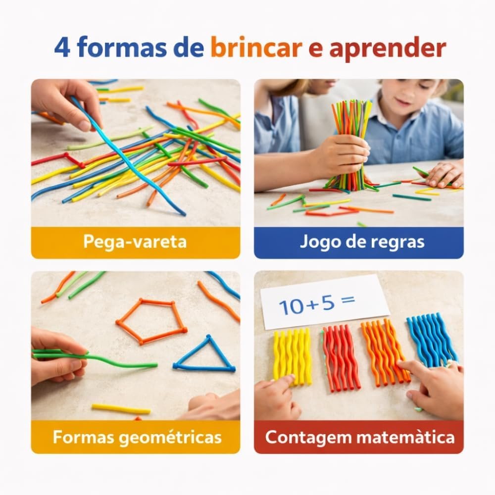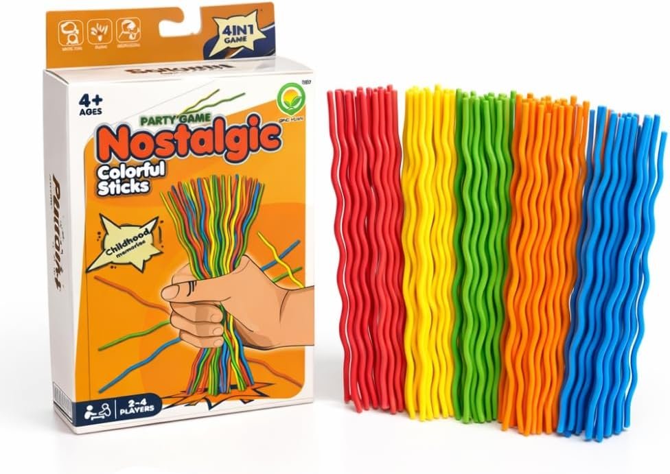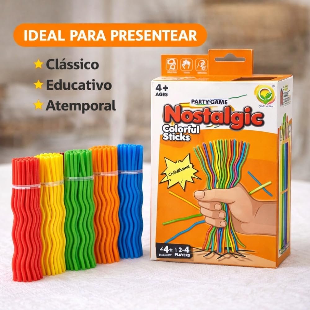 Pega Vareta Premium 4 em 1 – Jogo Nostálgico com 150 Peças Coloridas Onduladas | Brinquedo Educativo que Desenvolve Coordenação, Foco e Raciocínio | Diversão Garantida para Crianças e Família 4+ Anos
