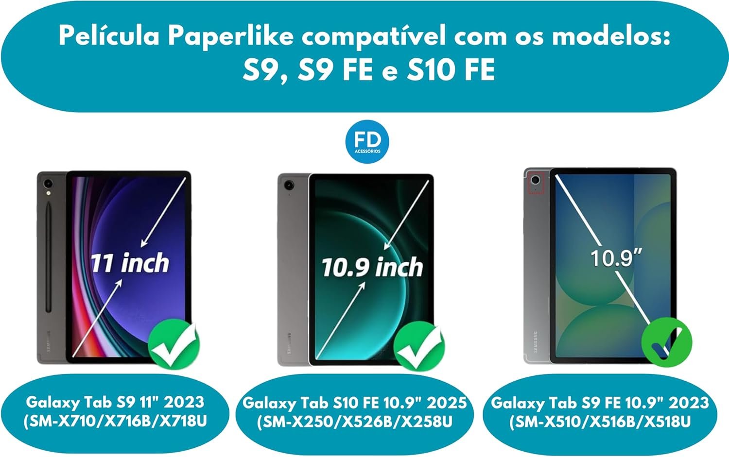 Película Para Samsung Galaxy Tab S9 FE Paperlike Fosca Sensação de Papel Anti Relexo Anti Risco Anti Poeira em Cerâmica 9D