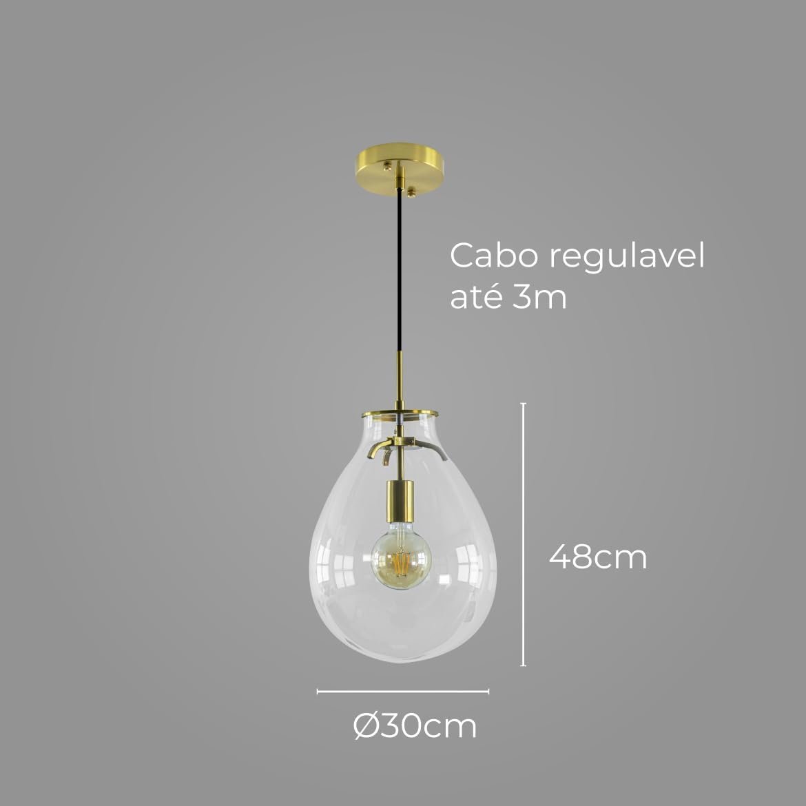 Pendente Caju Bronze Vidro Transparente 48cm E27 BellaPendente Caju Bronze Vidro Transparente 48cm E27 Bella