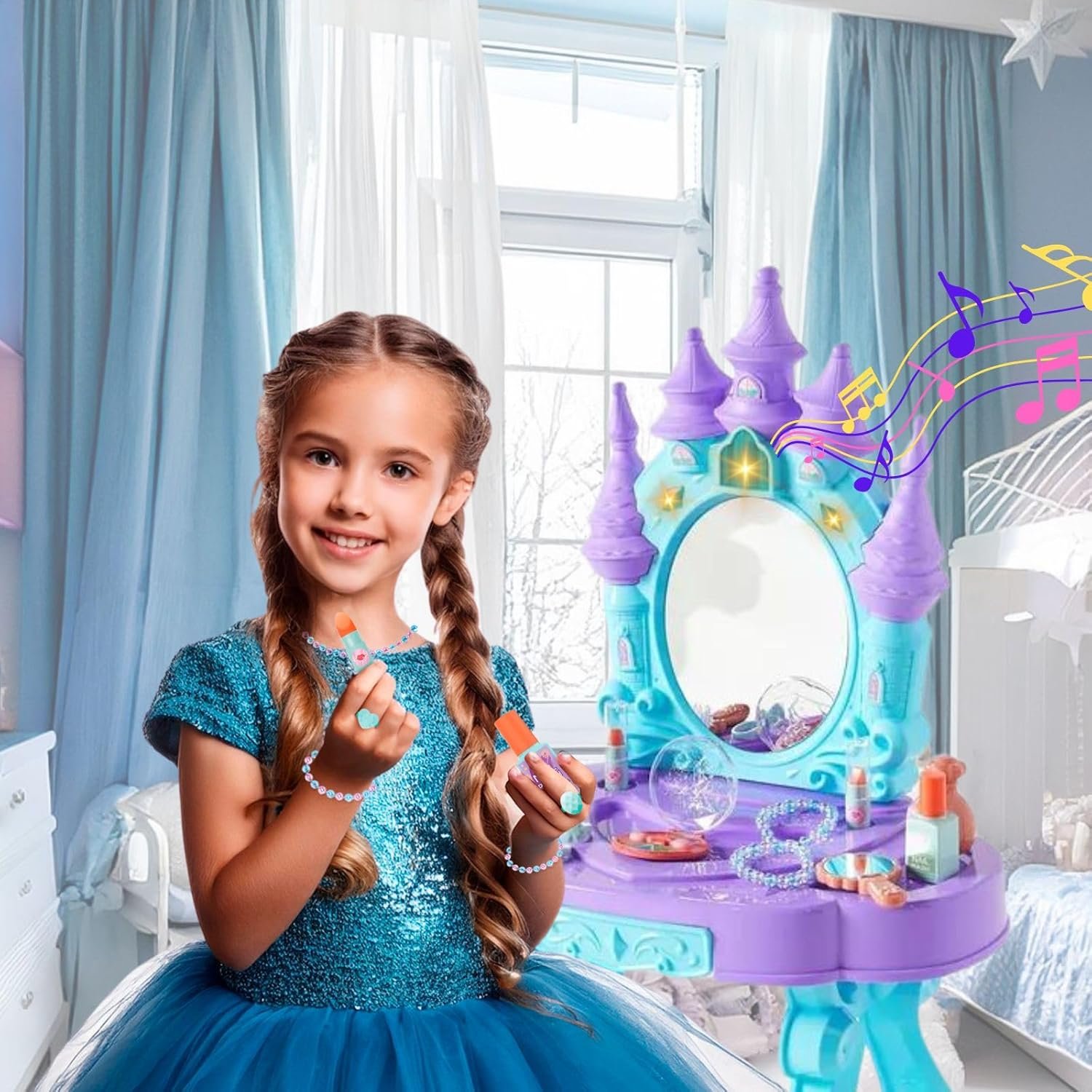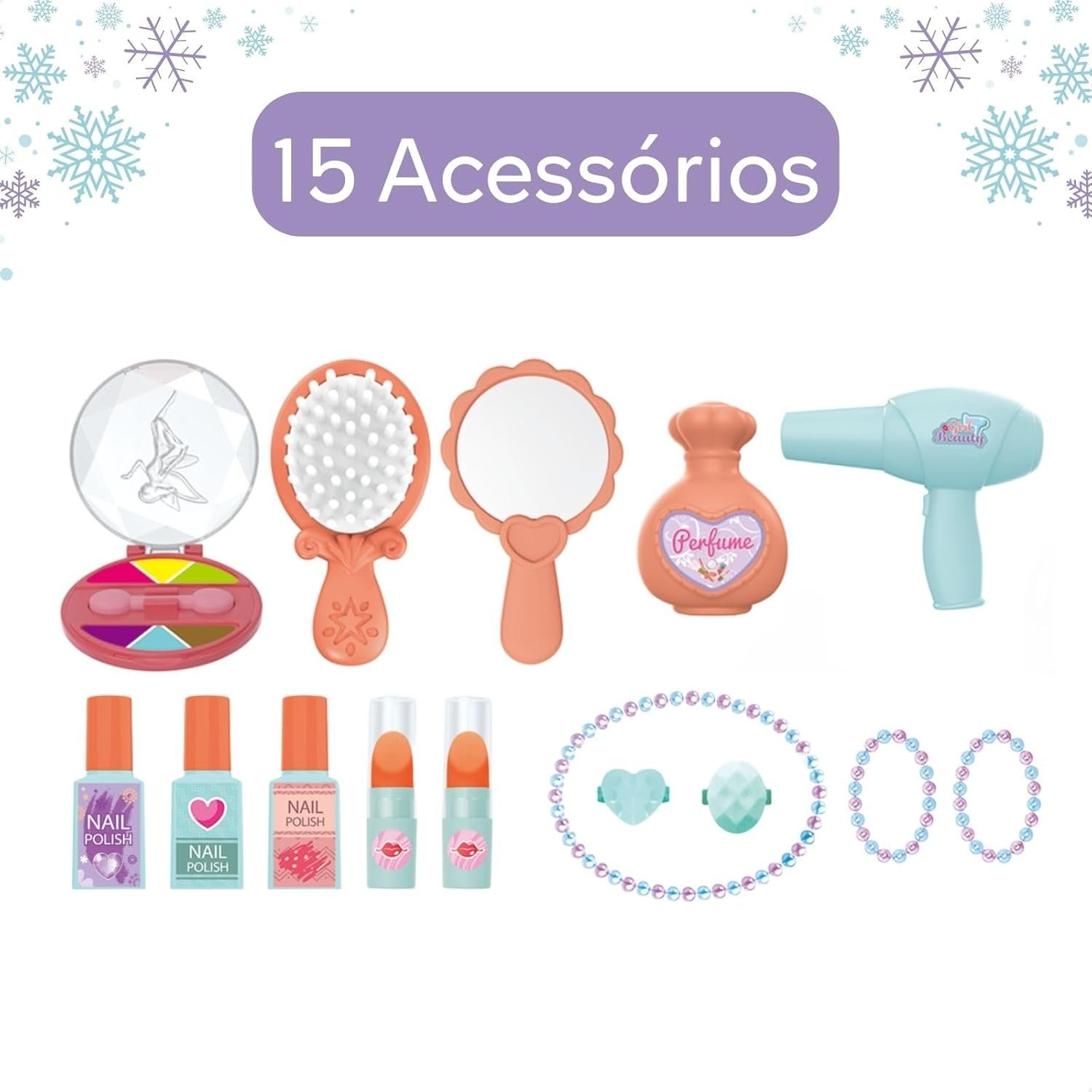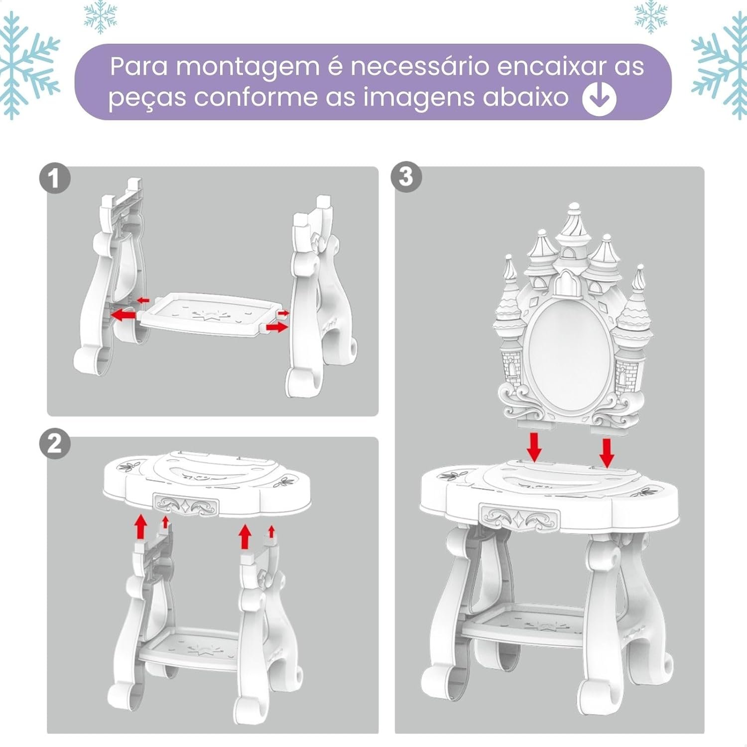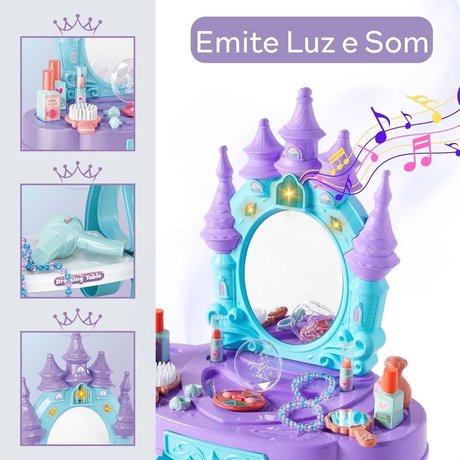 Penteadeira Princesa Infantil Castelo Emite Luz e Som com 15 Acessórios de Beleza Fashion
