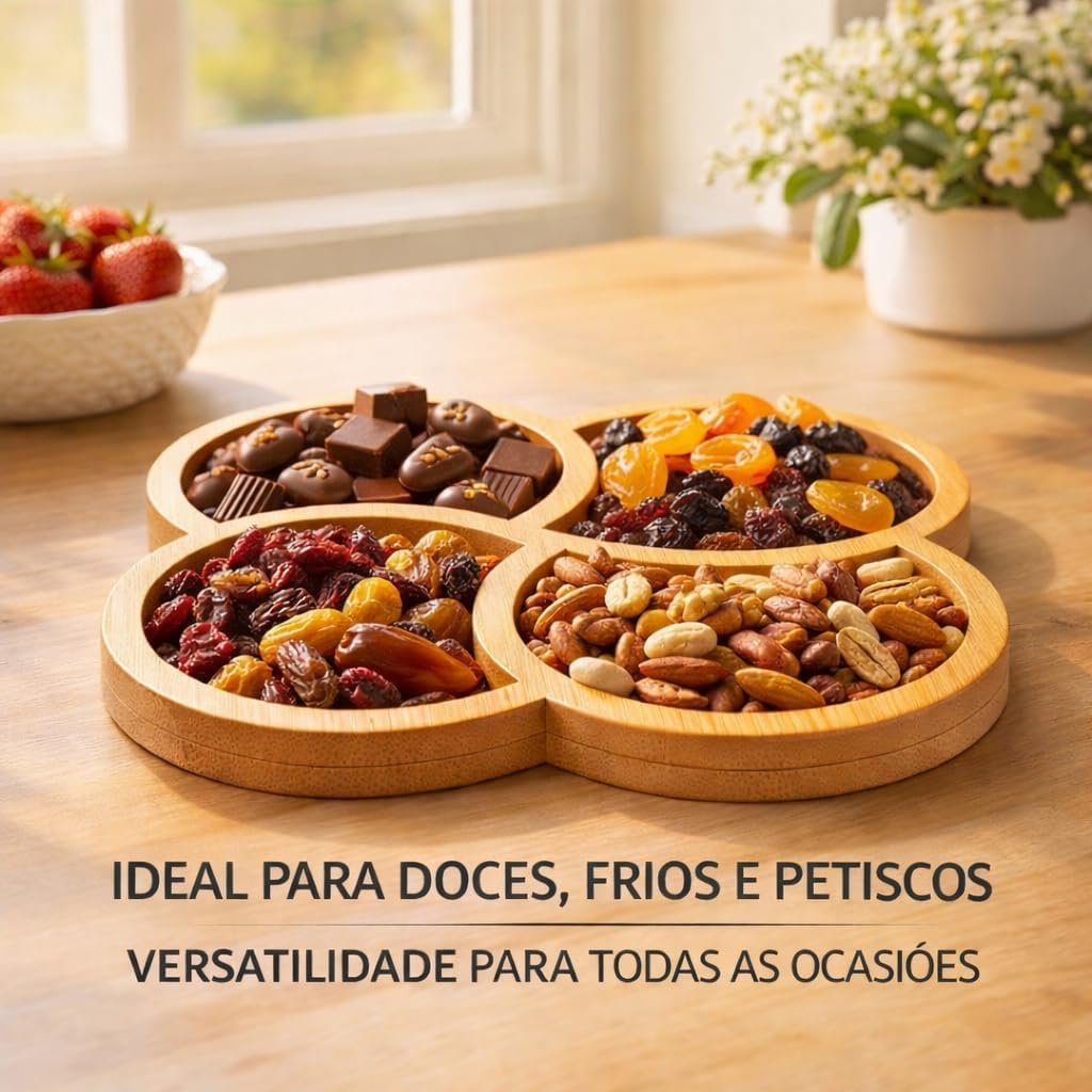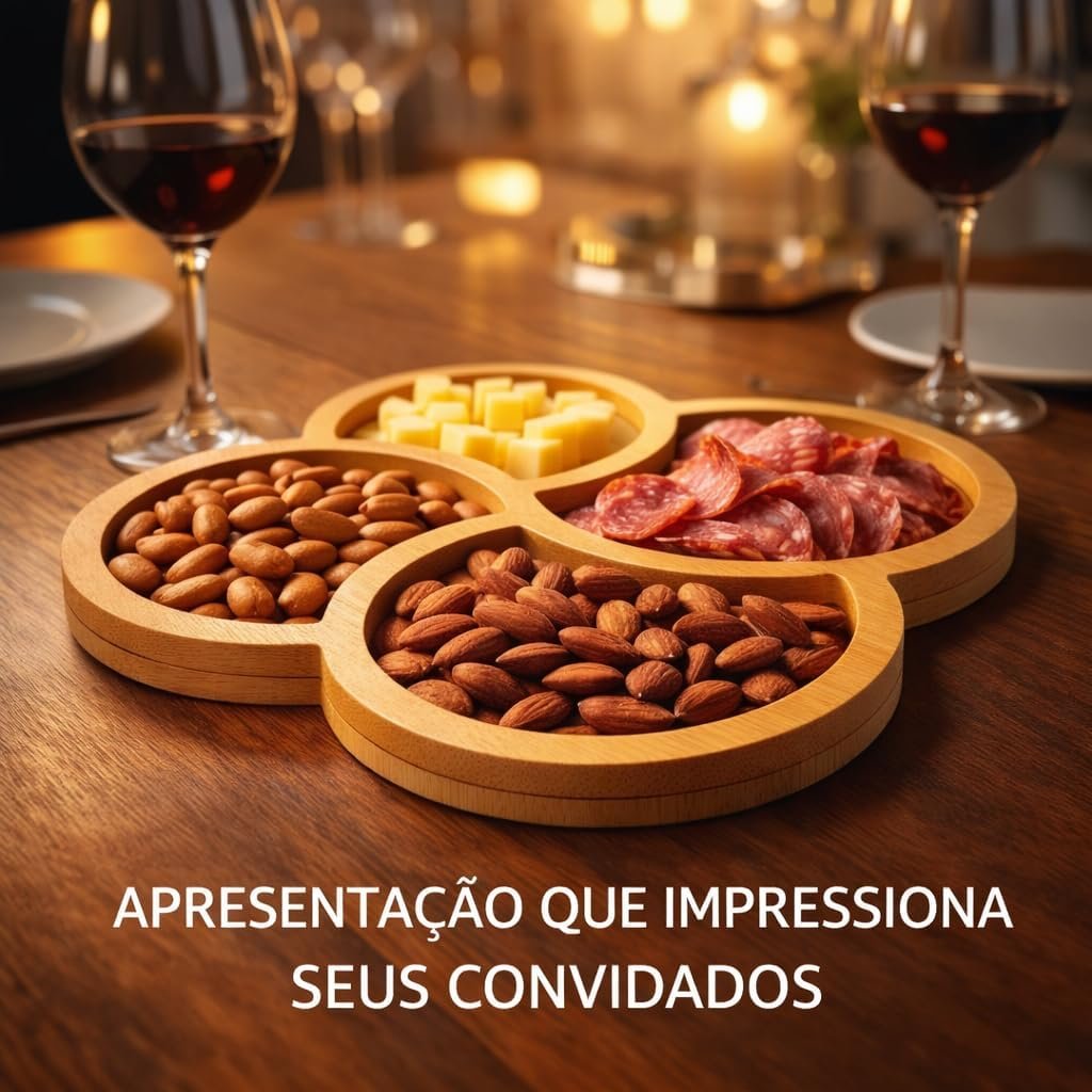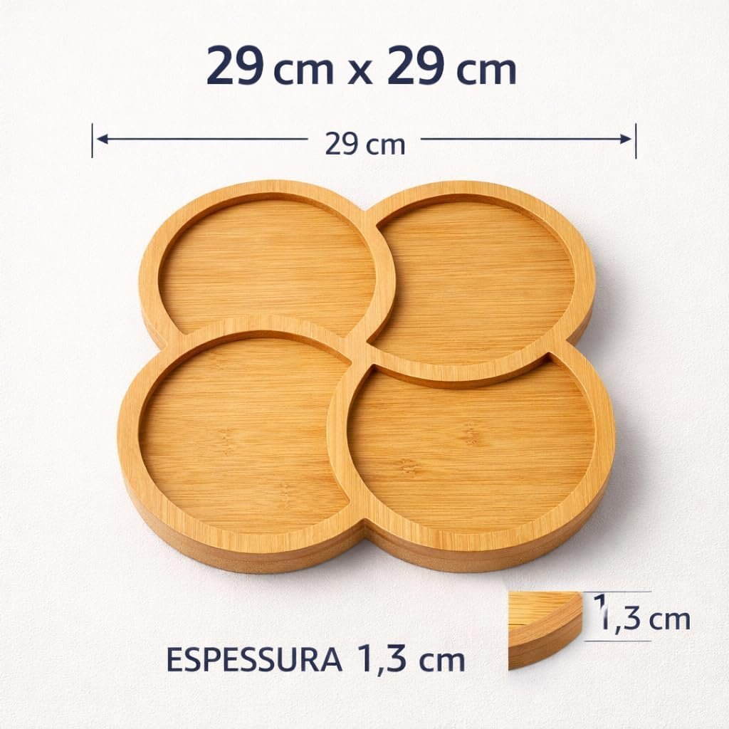 Petisqueira Trevo 29x29cm com 4 Divisórias Simétricas em MDF – Bandeja Gourmet para Petiscos, Frios e Queijos – Centro de Mesa Decorativo ModernoPetisqueira Trevo 29x29cm com 4 Divisórias Simétricas em MDF – Bandeja Gourmet para Petiscos, Frios e Queijos – Centro de Mesa Decorativo Moderno