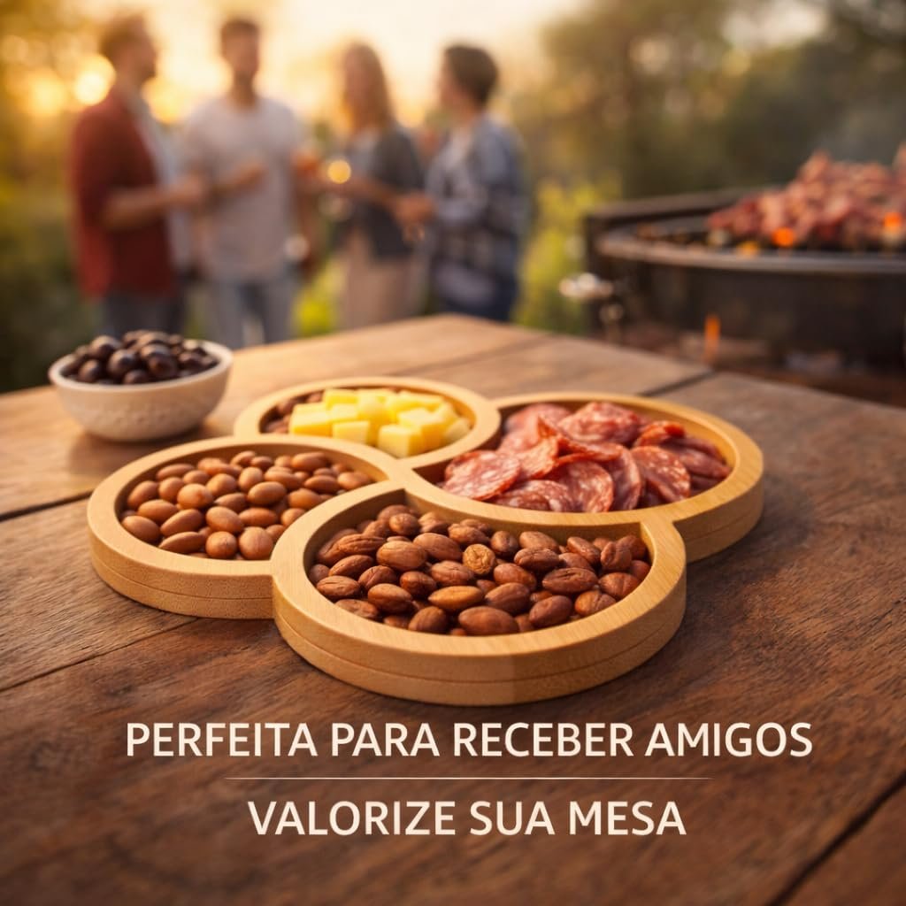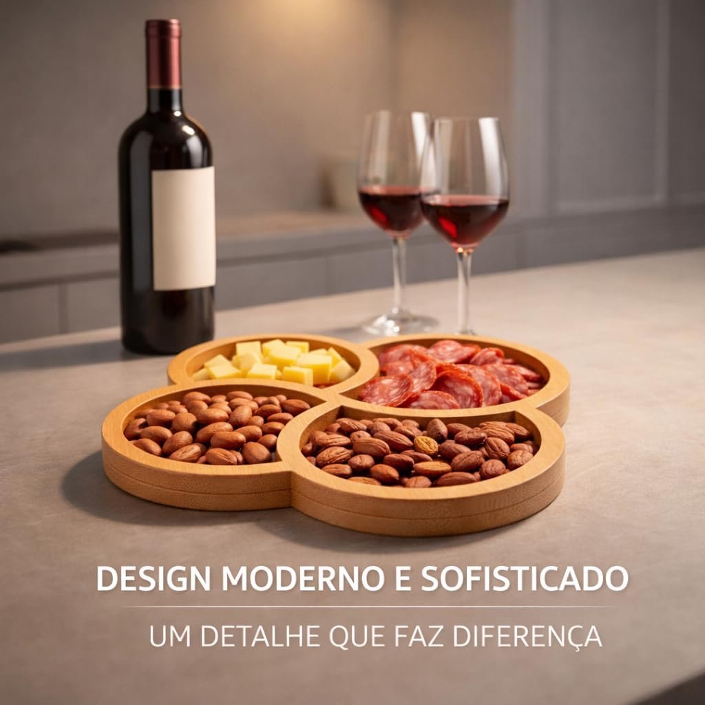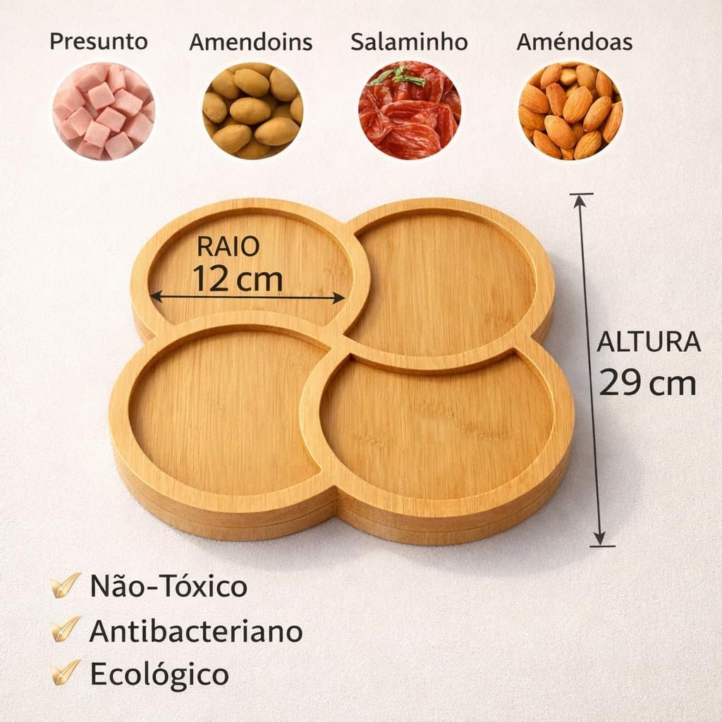 Petisqueira Trevo 29x29cm com 4 Divisórias Simétricas em MDF – Bandeja Gourmet para Petiscos, Frios e Queijos – Centro de Mesa Decorativo ModernoPetisqueira Trevo 29x29cm com 4 Divisórias Simétricas em MDF – Bandeja Gourmet para Petiscos, Frios e Queijos – Centro de Mesa Decorativo Moderno