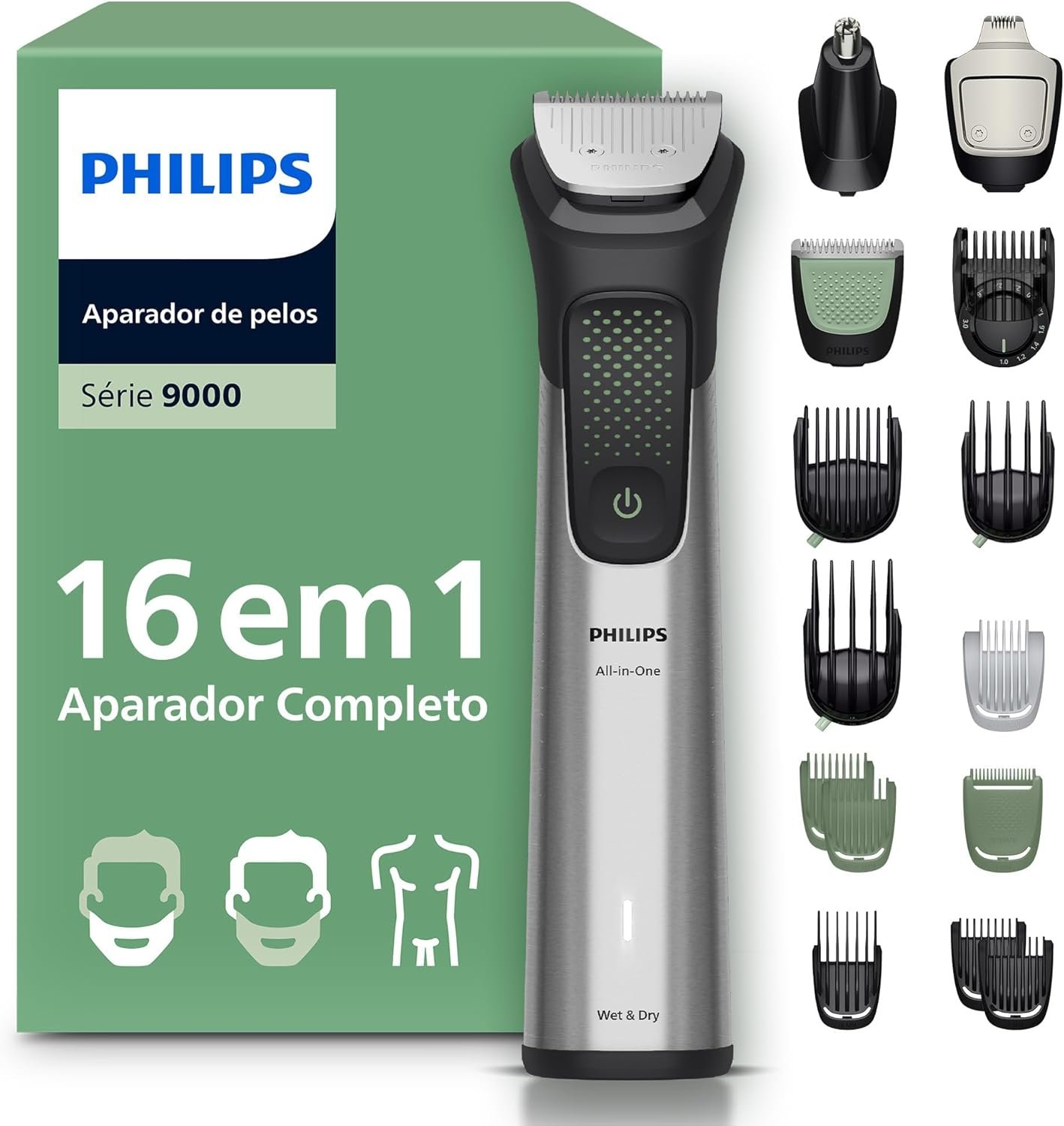 PHILIPS Aparador de pelos premium multigroom 16 em 1 para Rosto, Cabelo e Corpo – MG9532/15