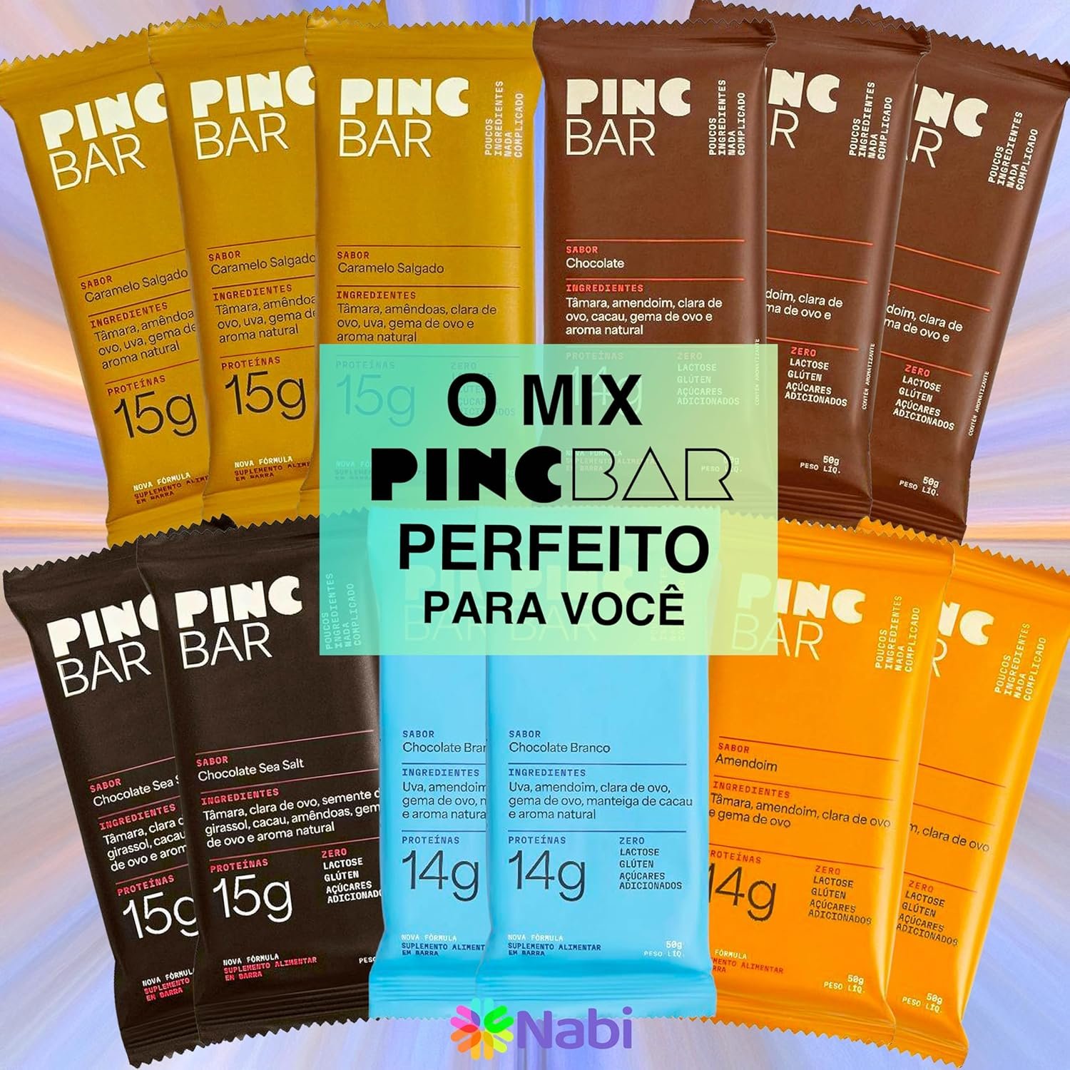 PincBar MIX de CHOCOLATES – 5 SABORES 12 unidades – Barra de Proteína Sem Açúcar 50g