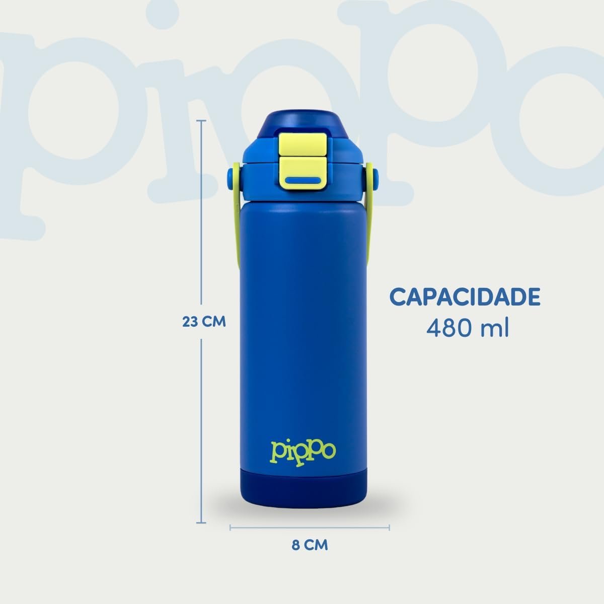Seja o primeiro a avaliar “Pippo Garrafa Termica Infantil Tampla Dupla Função com Parede Dupla em Aço Inox Com Alça Sem BPA (Azul)”