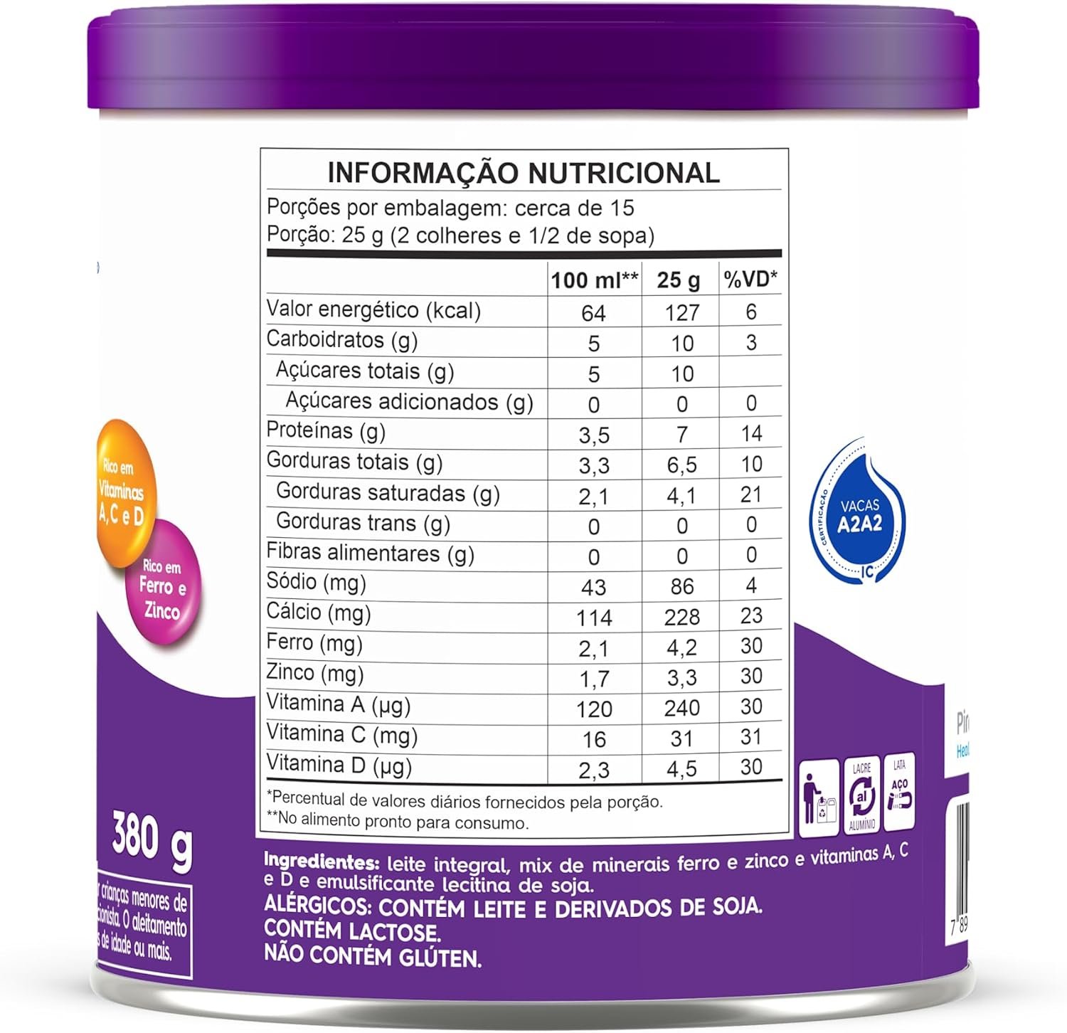 Piracanjuba Leite Em Pó Integral Instantâneo A2 380G –