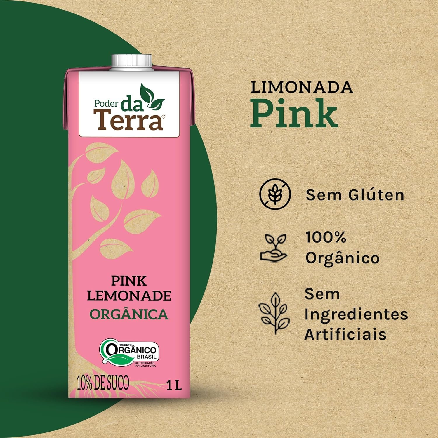 PODER DA TERRA – Limonada Orgânica com Framboesa – Bebida Natural, Sem Conservantes, Sem Glúten – Ingredientes Naturais – 1L