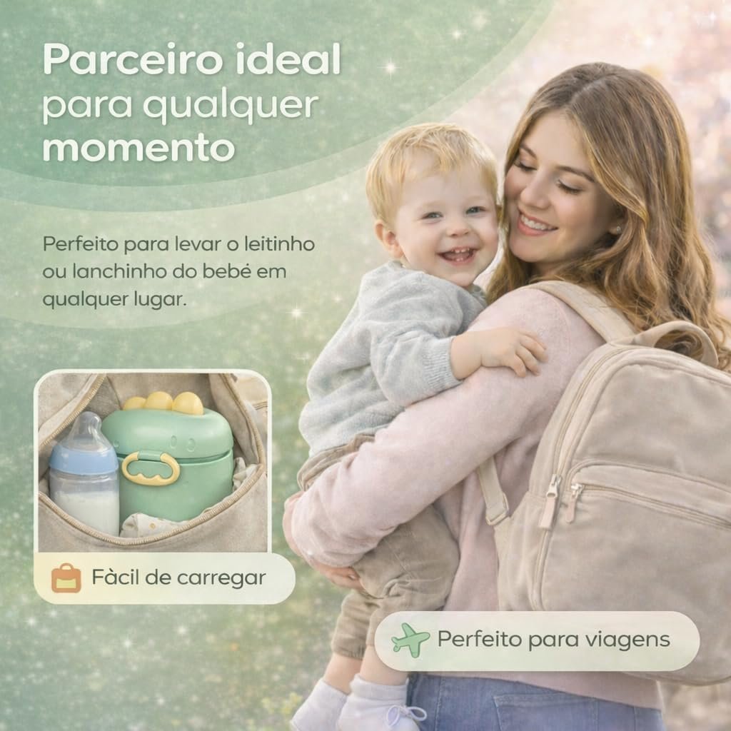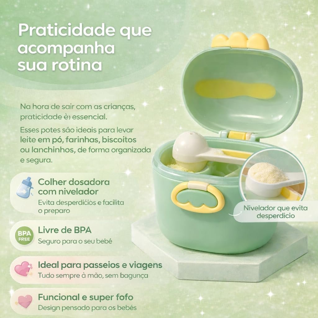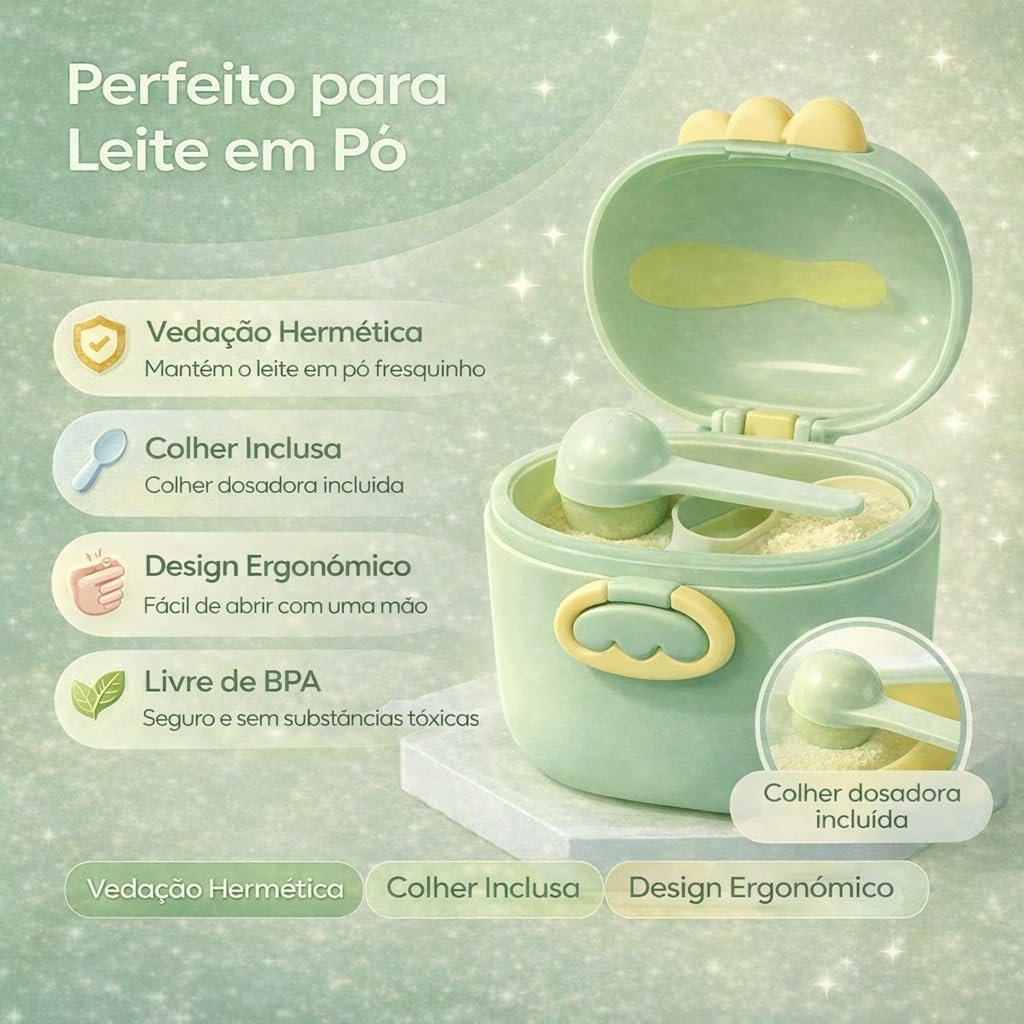 Porta Leite em Pó para Bebê 400ml com Colher Dosadora e Nivelador, Pote Organizador Livre de BPA, Tampa Hermética (VERDE)