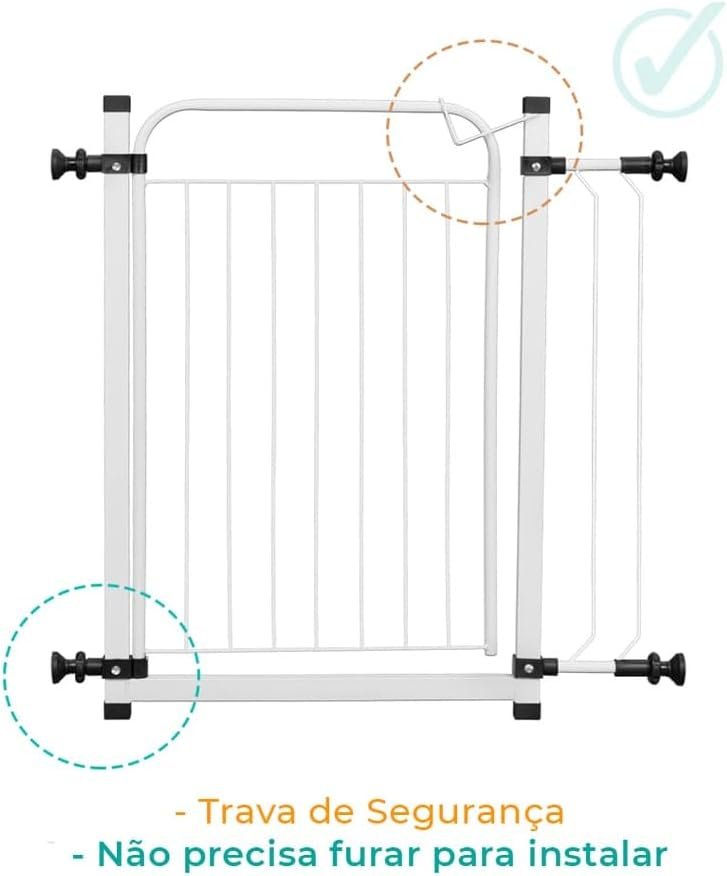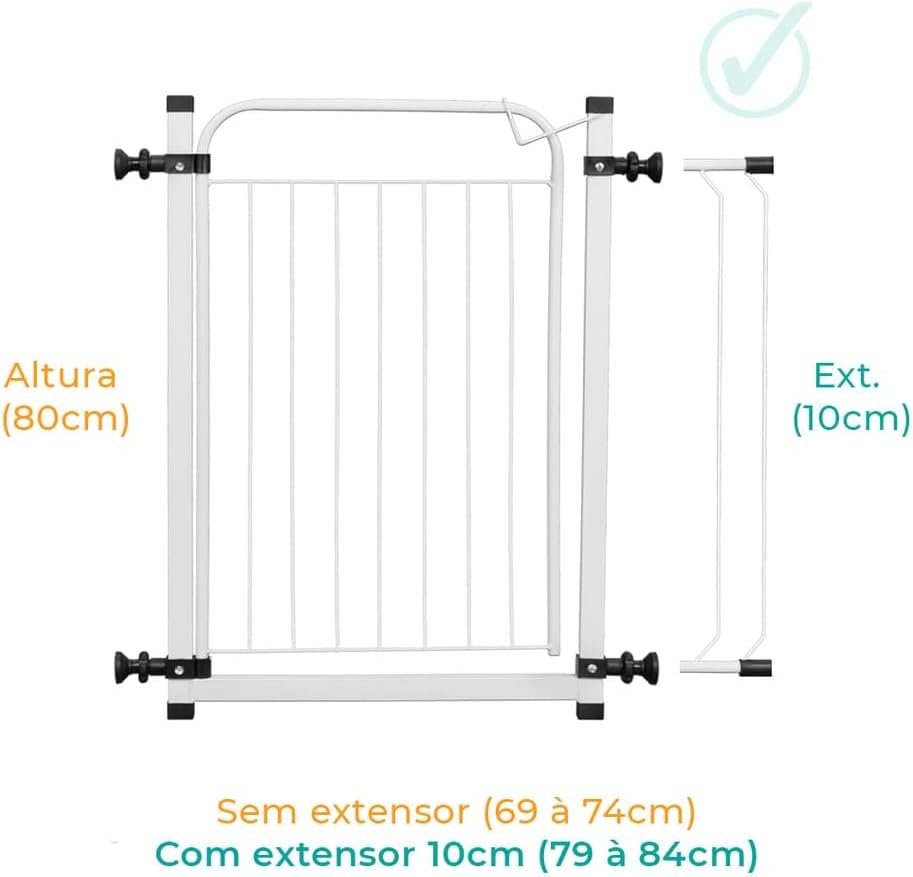 Portão Grade Proteção 69 à 74cm Criança Bebe Cão + Extensor 10cm Branco
