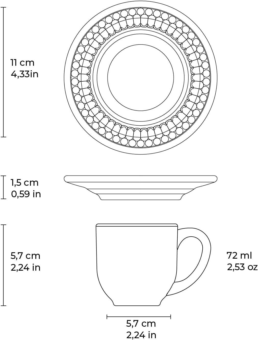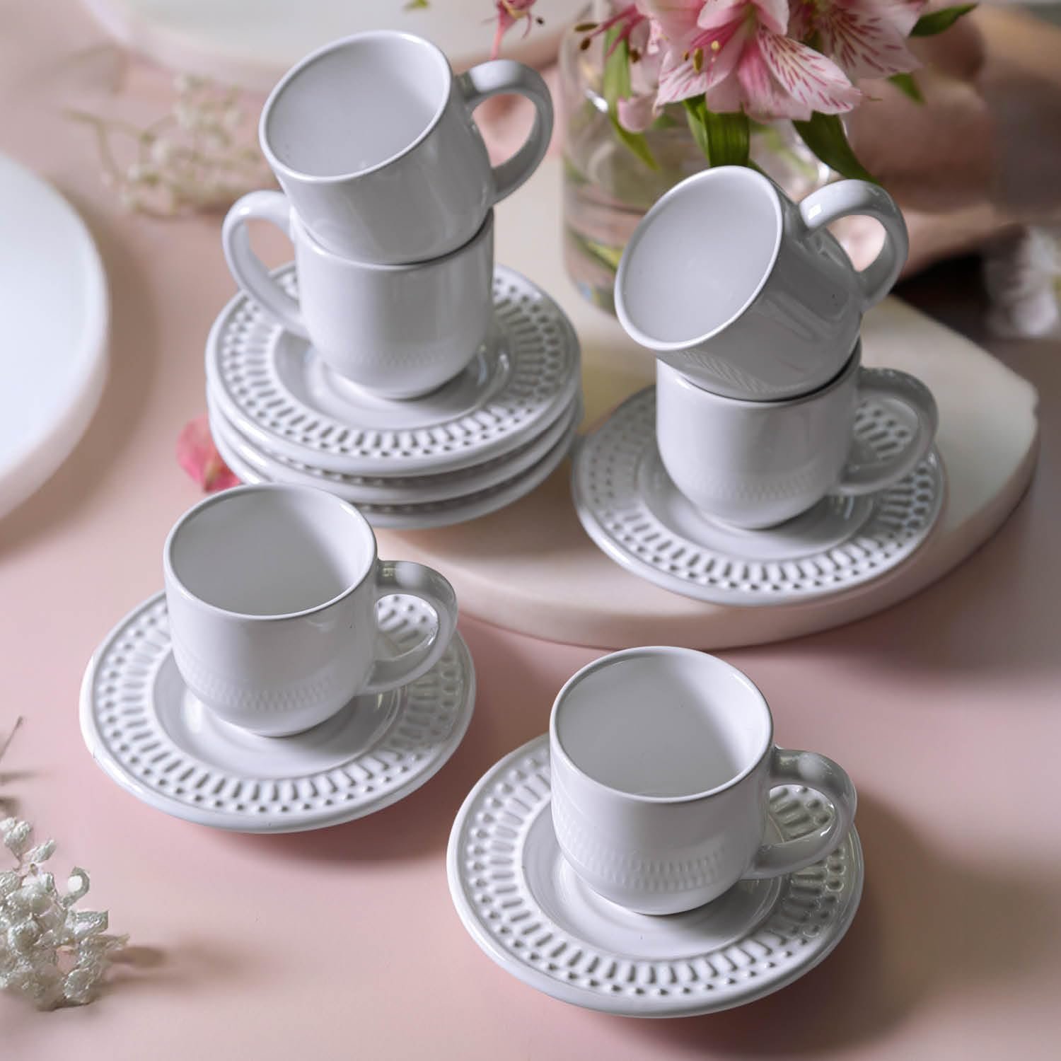 Porto Brasil Conjunto com 6 Xícaras de Café com Pires Roma BrancoPorto Brasil Conjunto com 6 Xícaras de Café com Pires Roma Branco