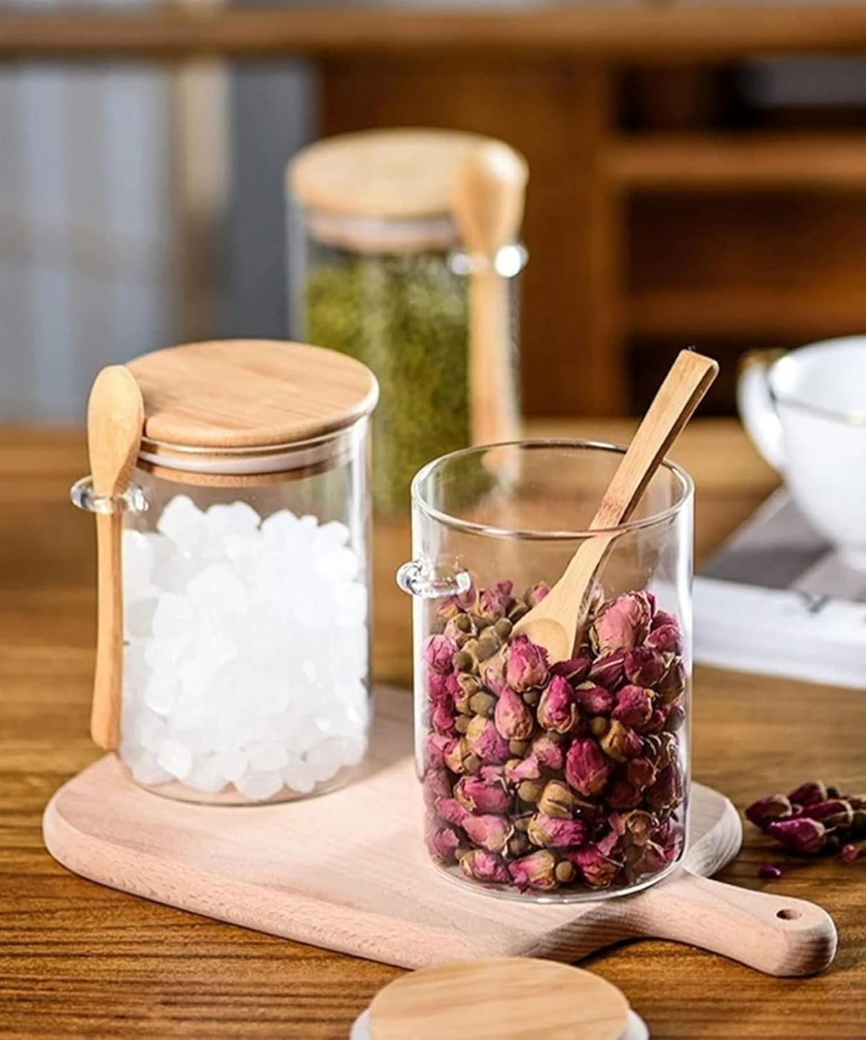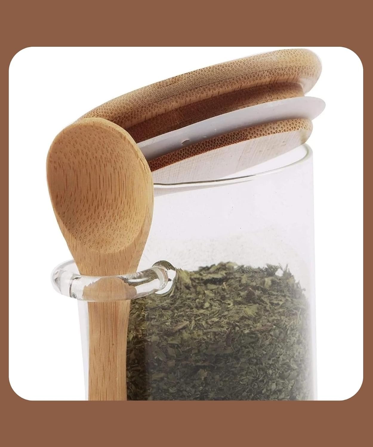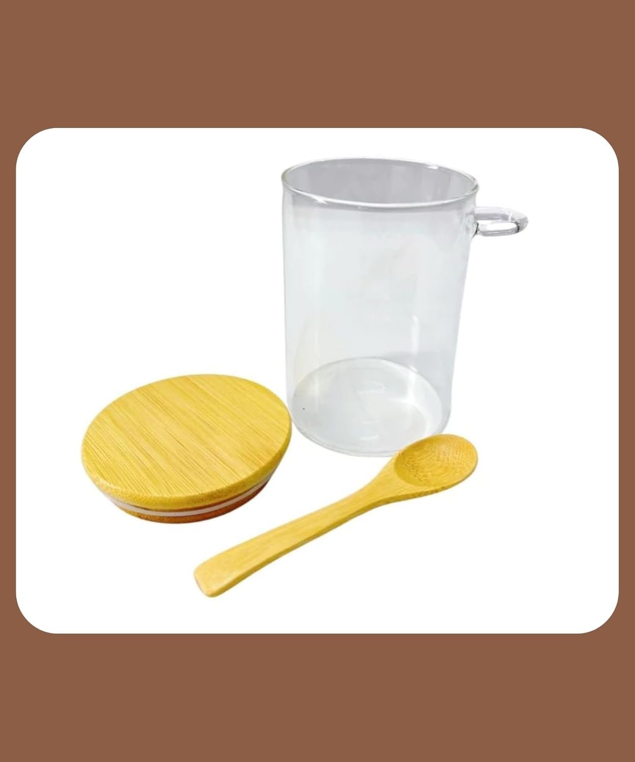 Pote Hermético de Vidro com Tampa de Bambu e Colher acoplada de Bambu – 650ml (3)