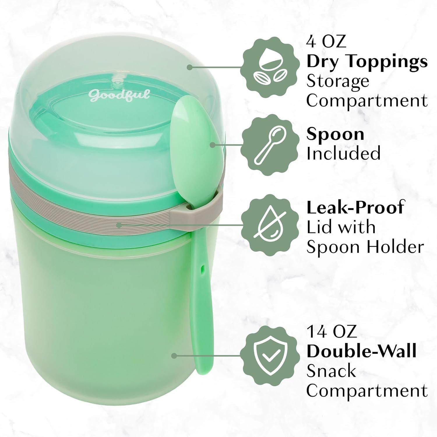 Pote térmico Goodful, com colher, 414 ml, verde